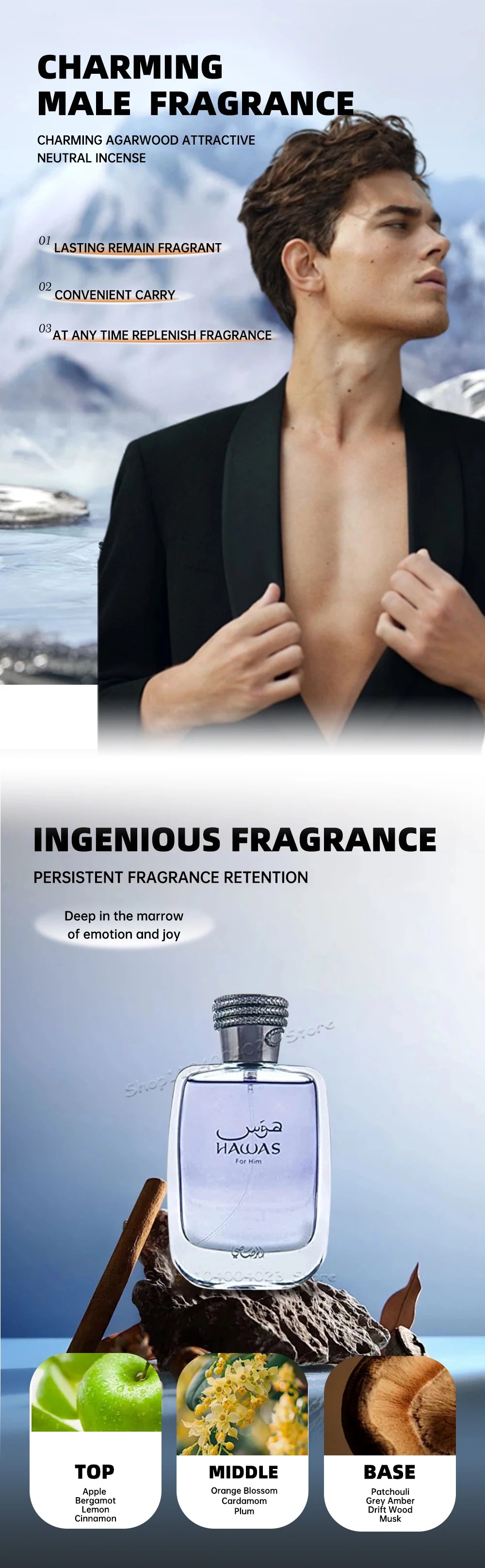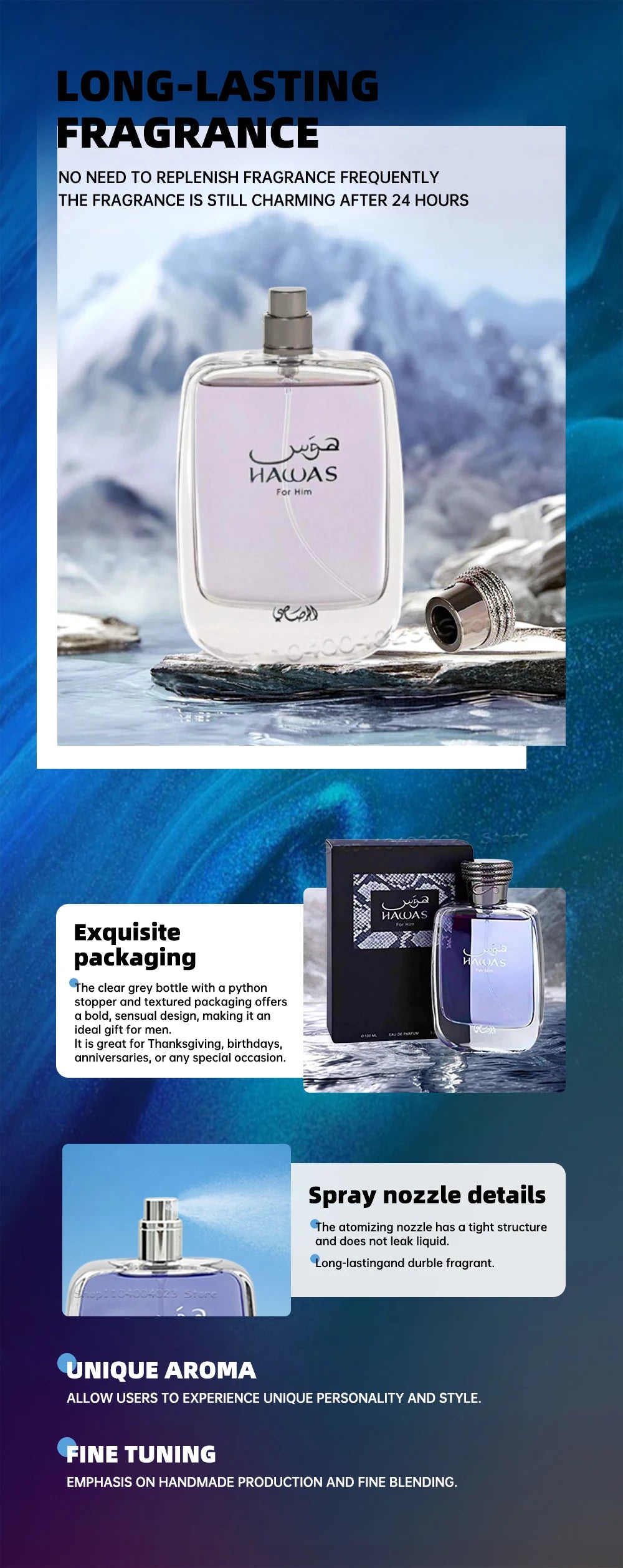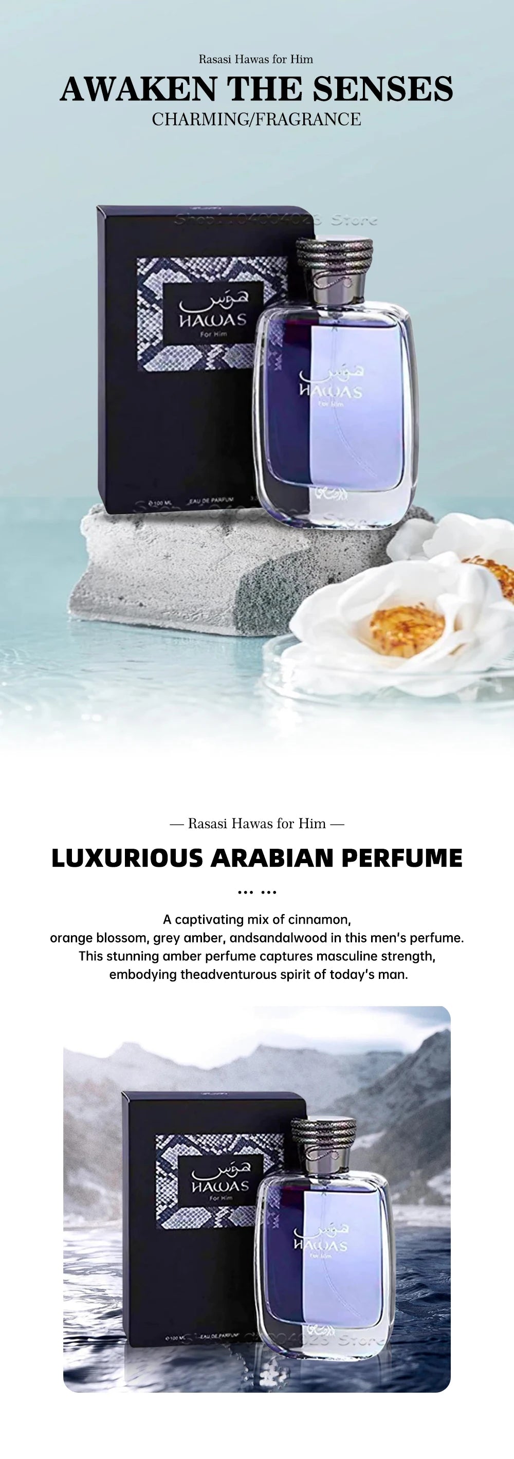 100ML Rasasi Hawas For Him EDP Long-Lasting Aquatic Scent Pour Homme Spray Original Arabic Perfume For Men Marine Aromatic Notes