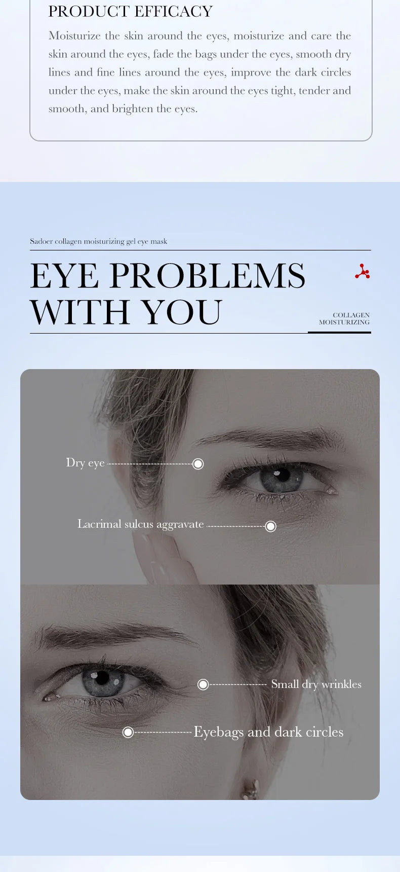 10pcs SADOER Hyaluronic Acid Collagen Face Mask For Forehead Eyes Cheek Moisturizing Firming Hydrating Facial Patches Skin Care