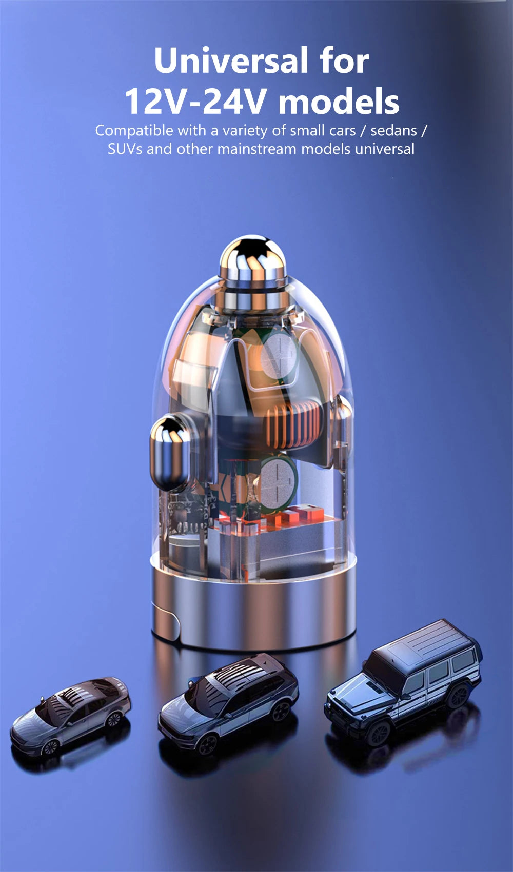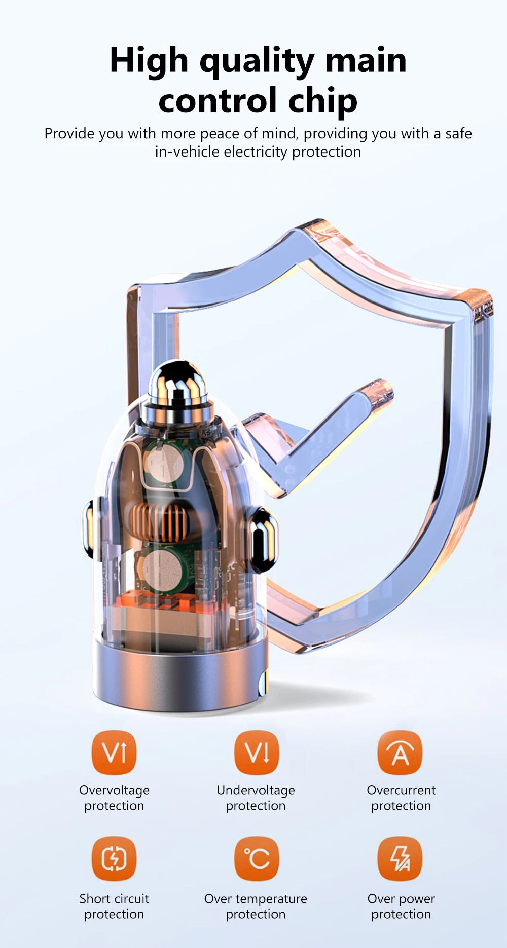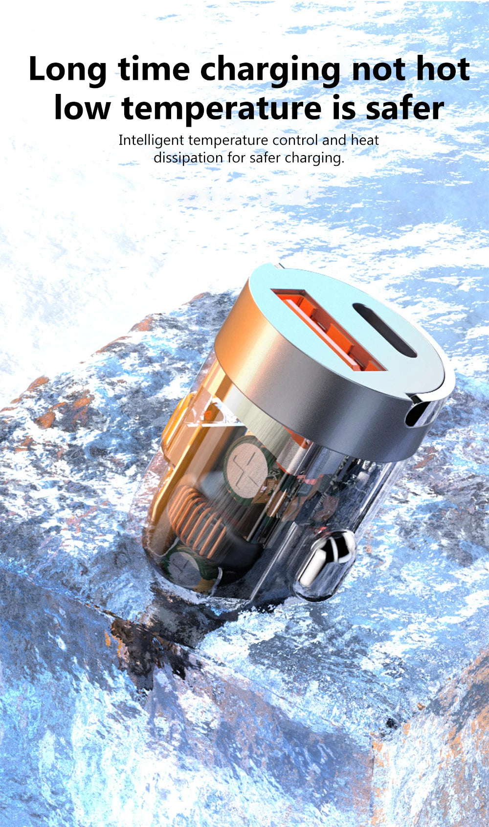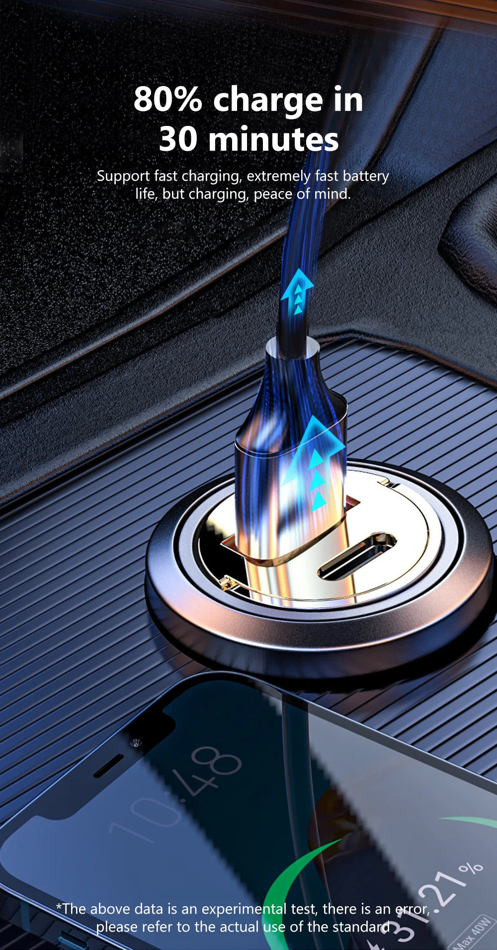 120W Transparent Invisible Pull Ring Car Charger USB Type C Fast Charging QC3.0 PD Phone Charger for iPhone Xiaomi Samsung