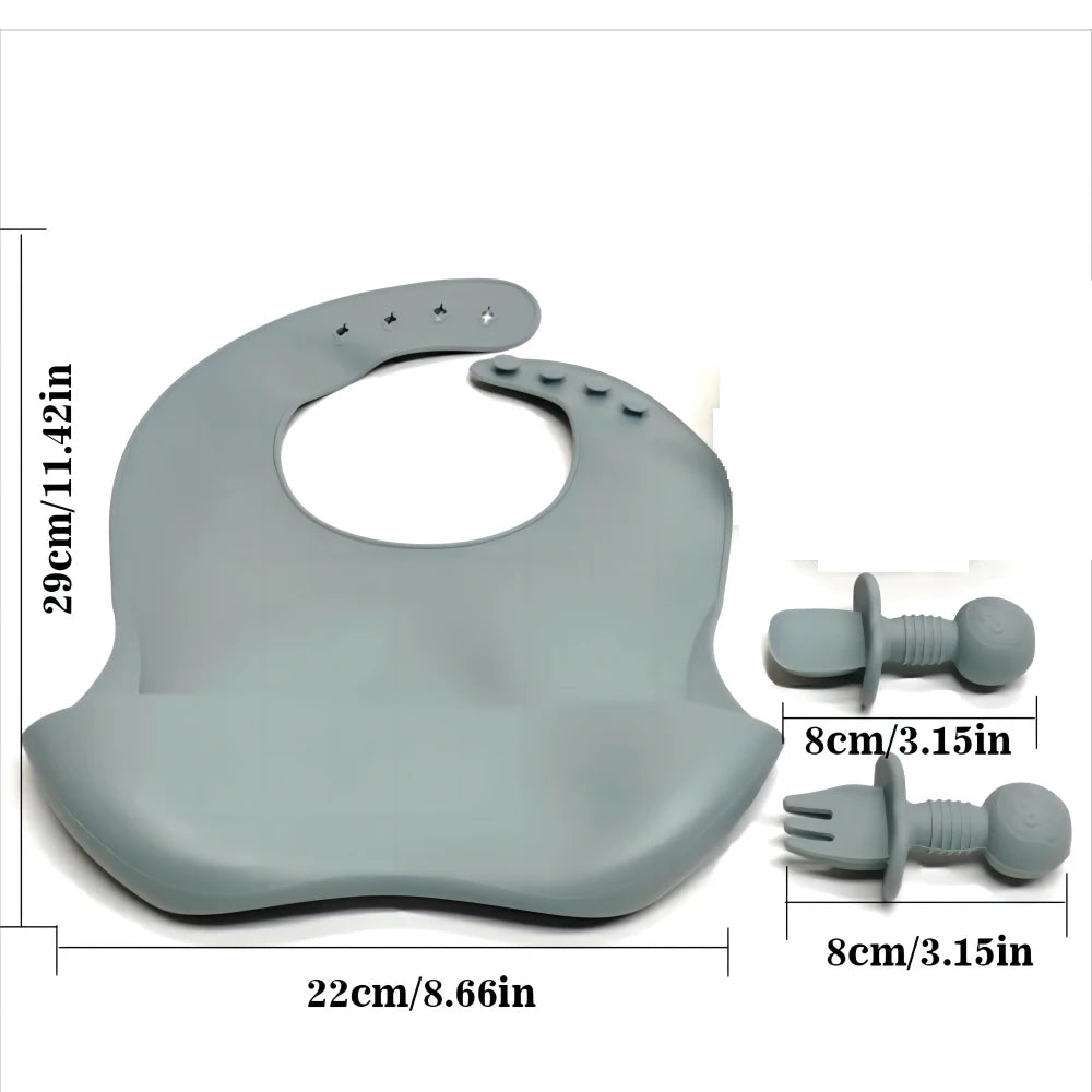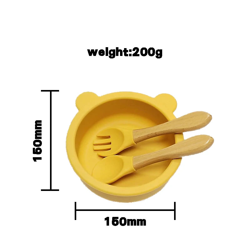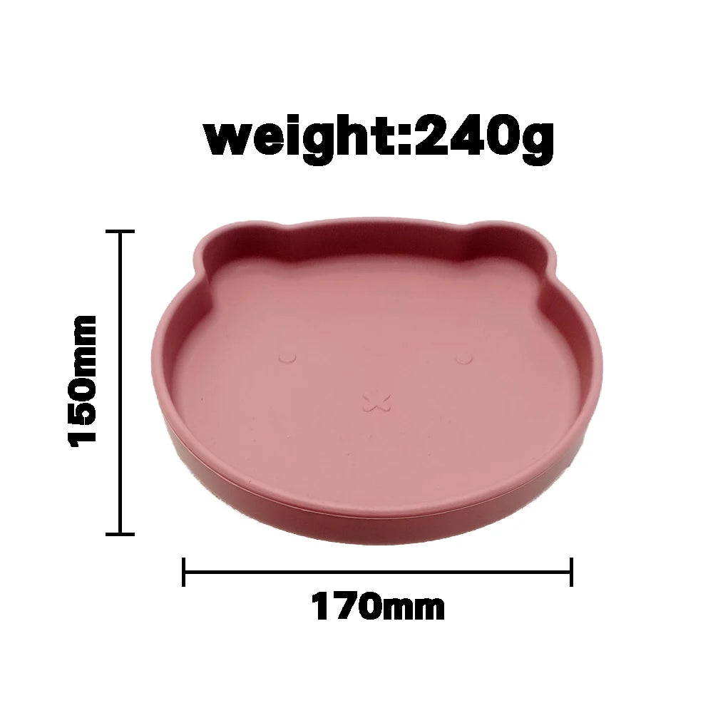 14pcs Silicone Baby Tableware Set Food Children Supplementary Bowl Baby Dinner Plate Fork Spoon Bib Non-slip Bowl Drop-proof Bow