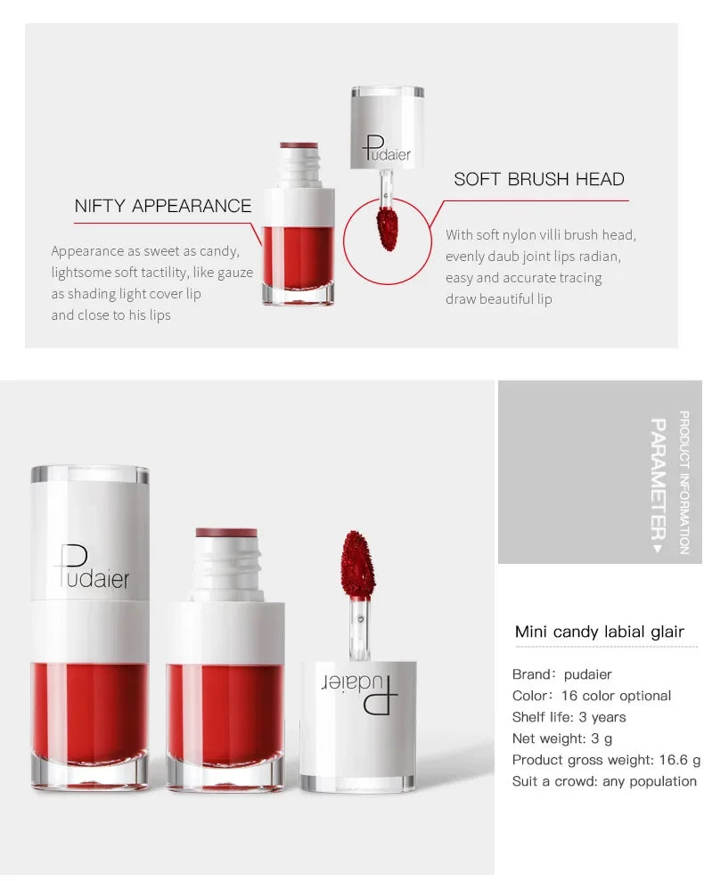 1PC Sexy Pink Women's Lipstick 16 Colors Lasting Waterproof Liquid Pencil Matte Liquid Lipsticks Makeups Non-Stick Cup Lip Gloss