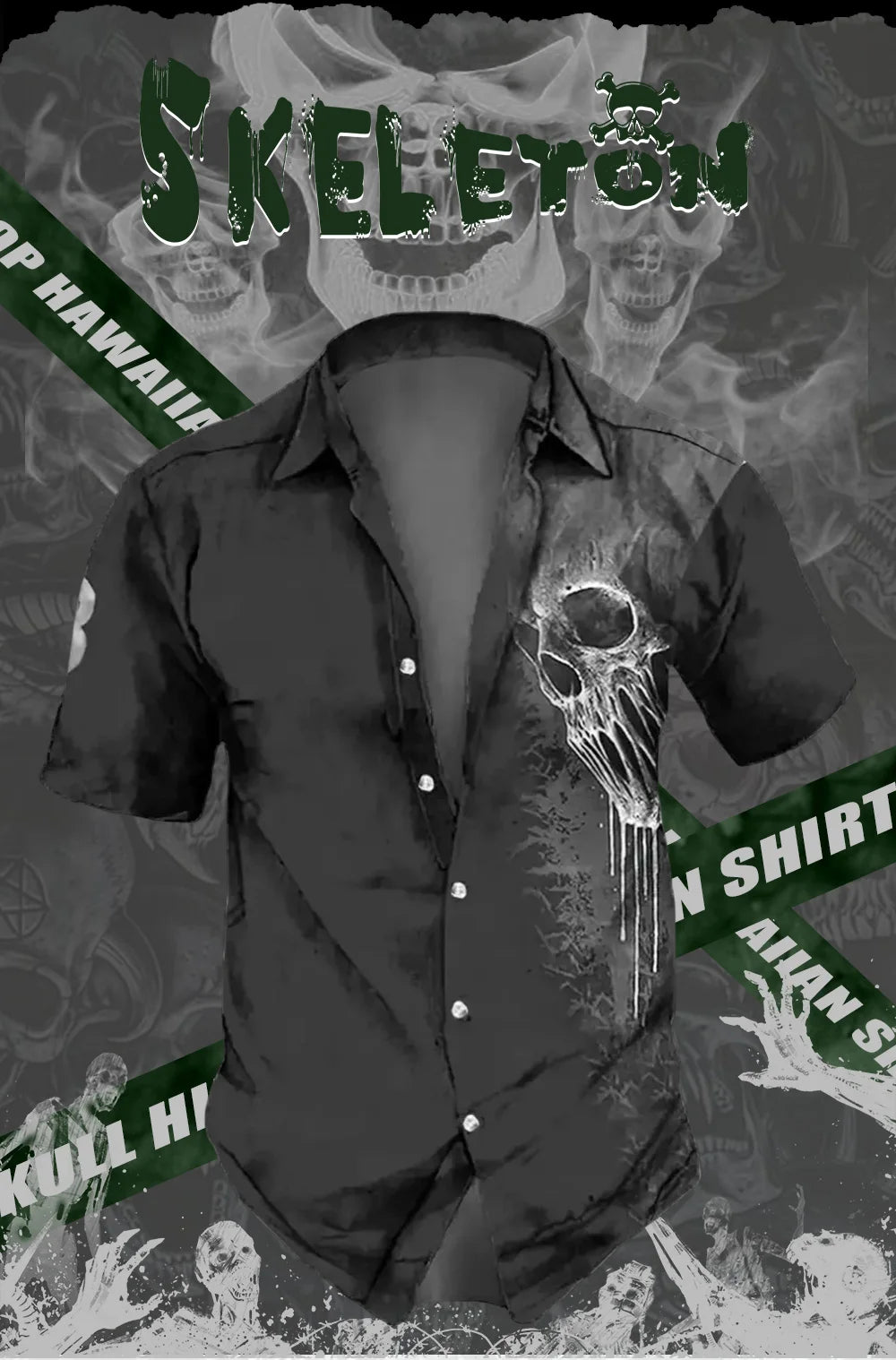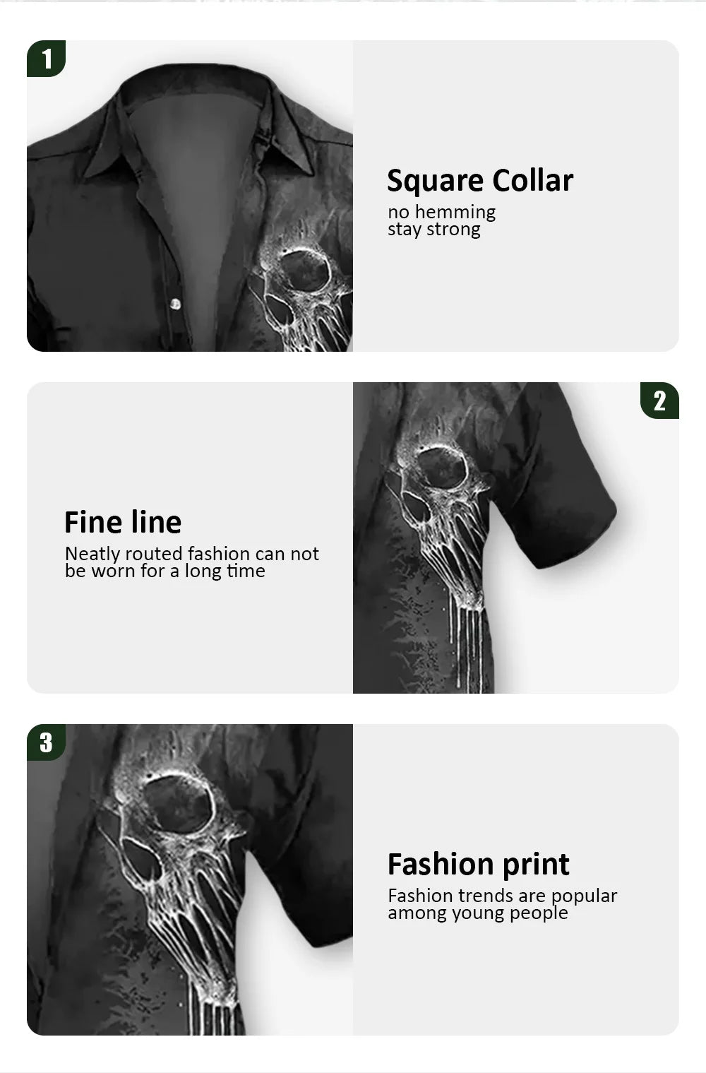 2023 Men's Shirts Lapel Streetwear Vintage Shirt For Men Skull Hip Hop Short Sleeve Top Party Summer Casual Hawaiian