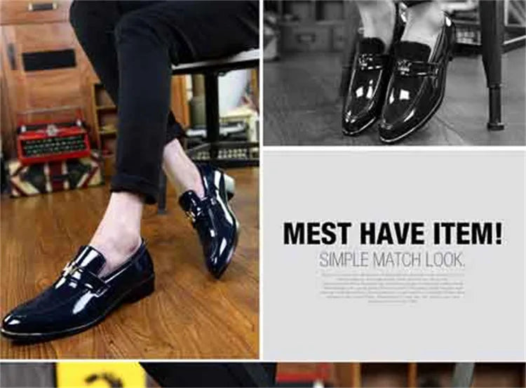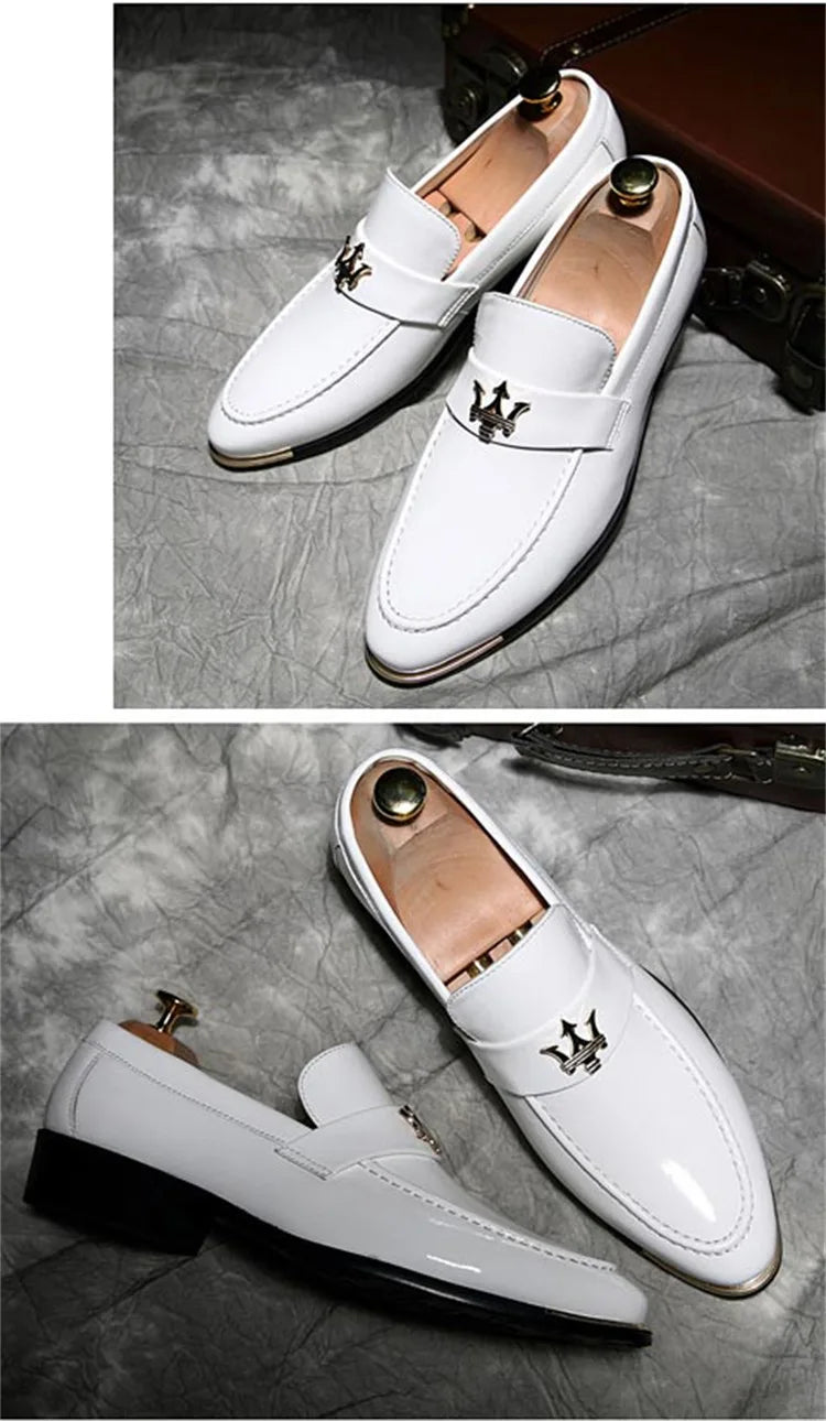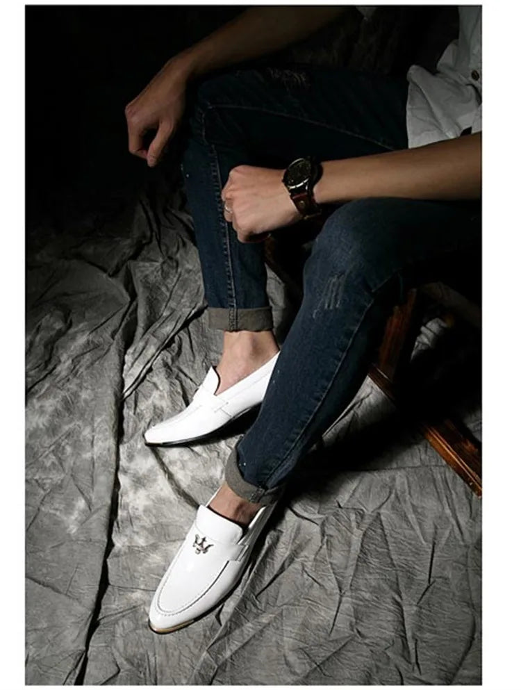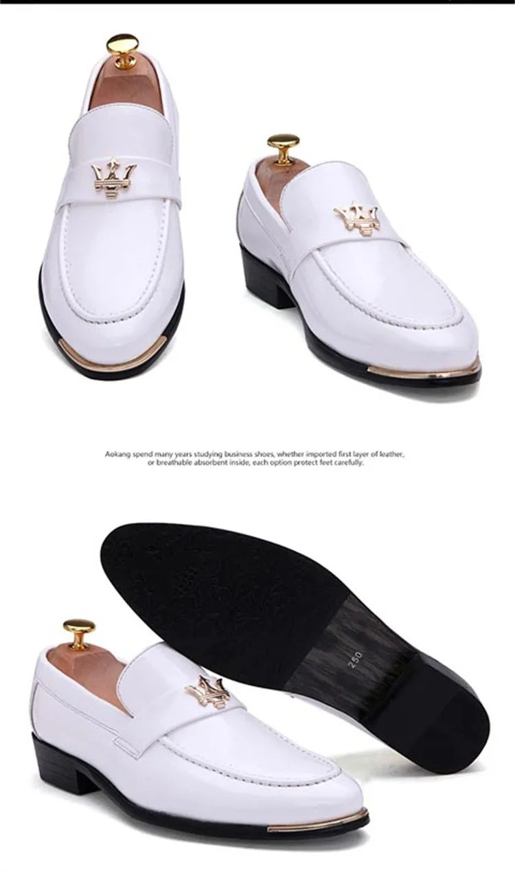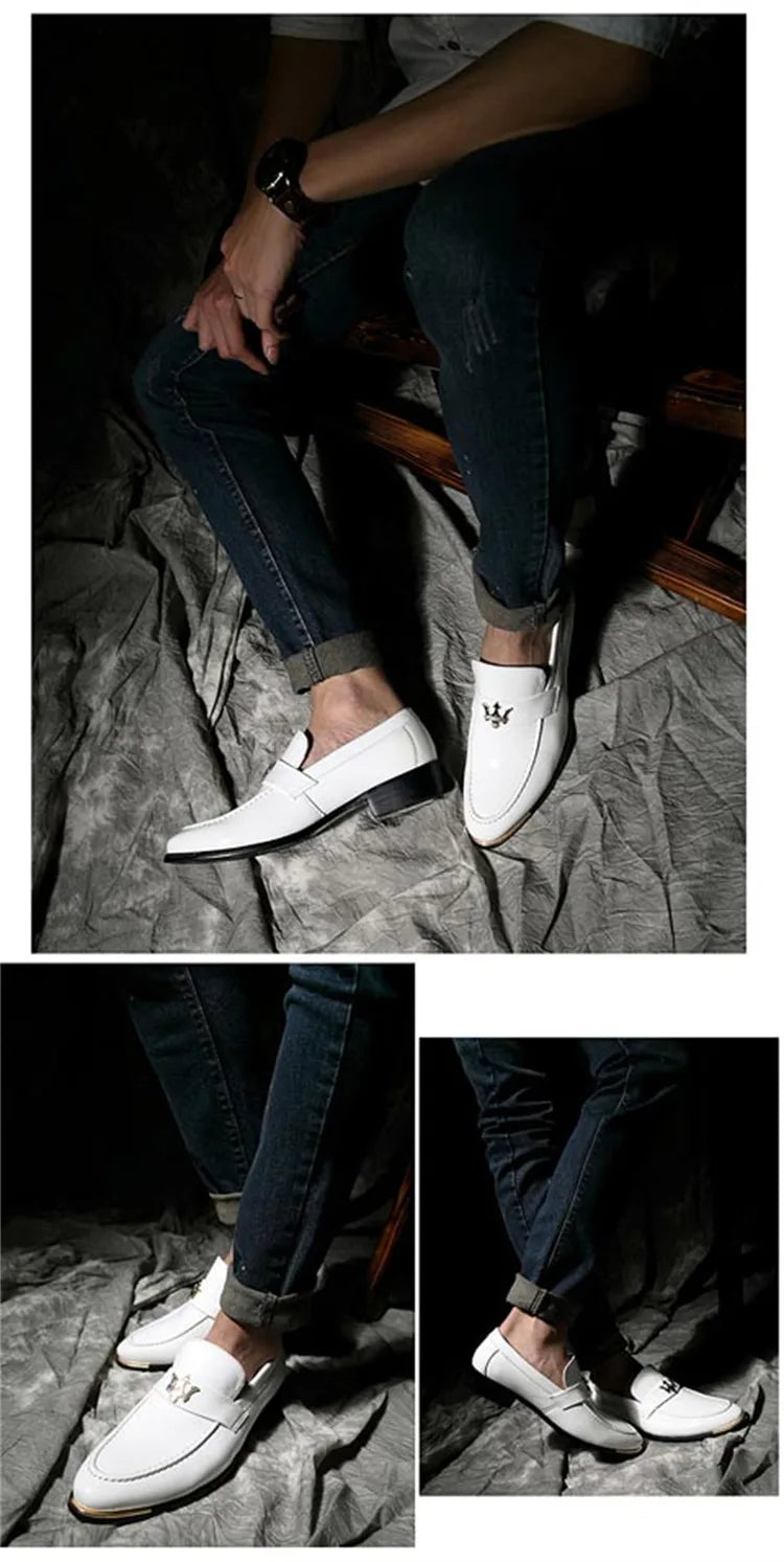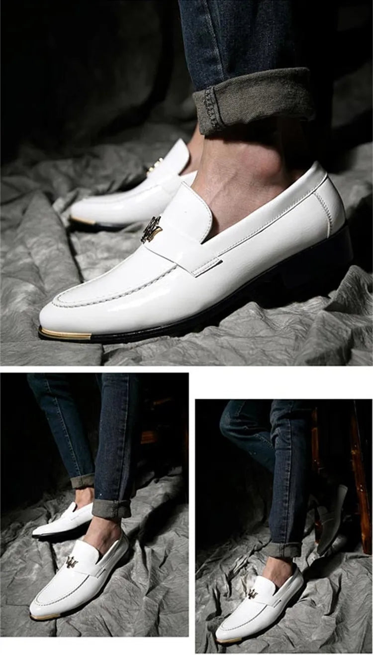 2024 New Fashion Red Men's Social Shoe Casual Glitter Leather Loafers Shoes for Men Slip-on Pointed Toe Dress Shoes Men Footwear