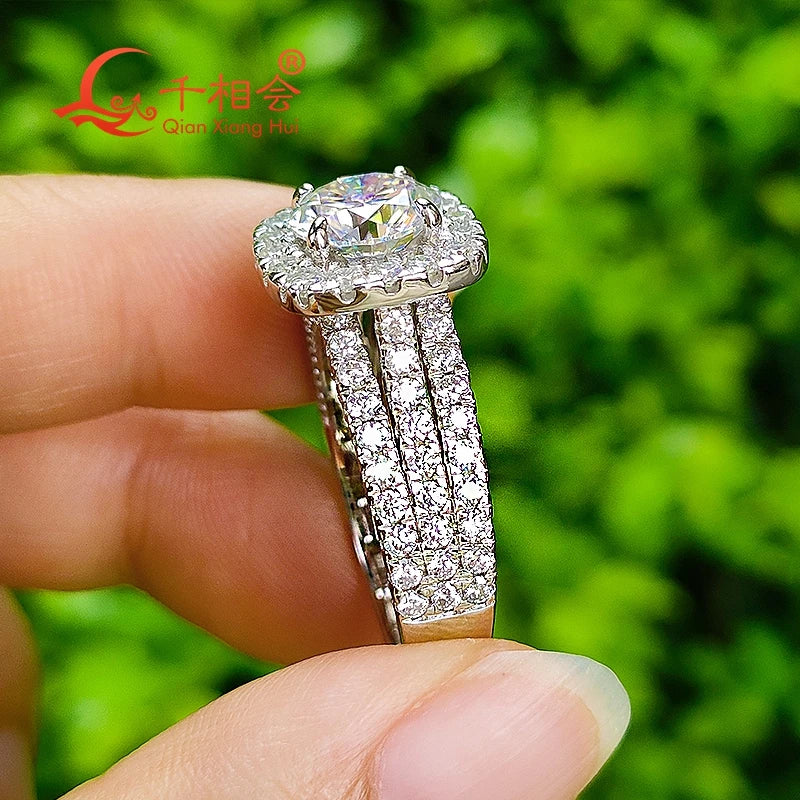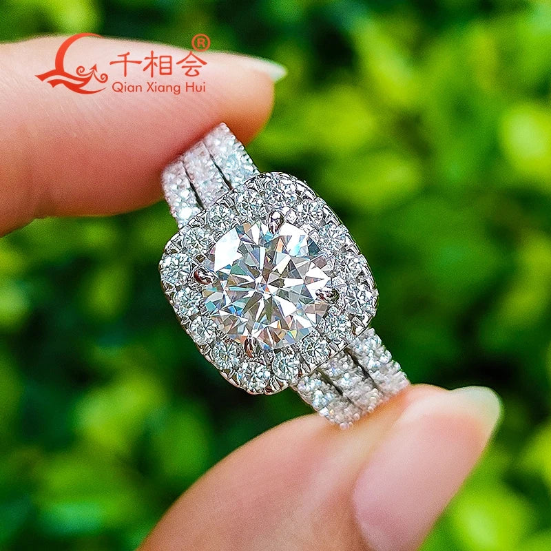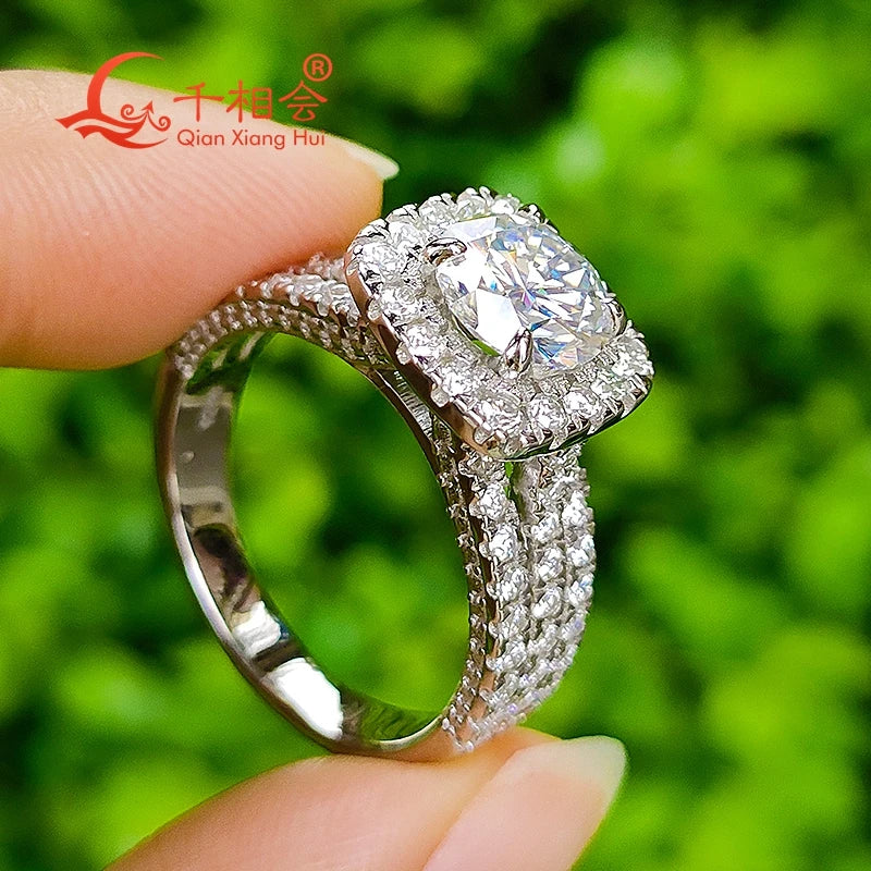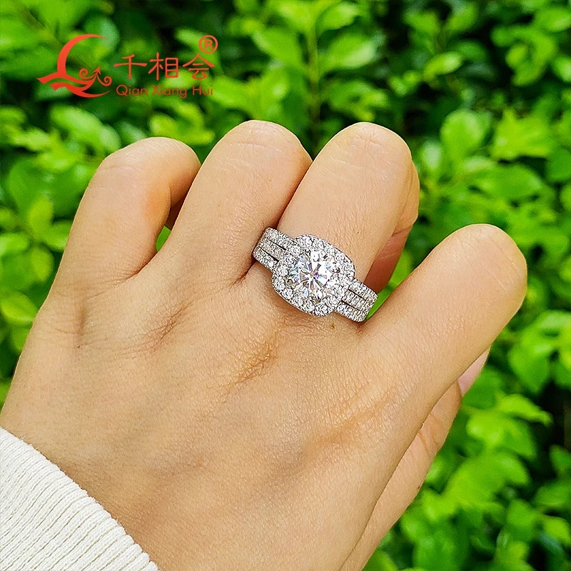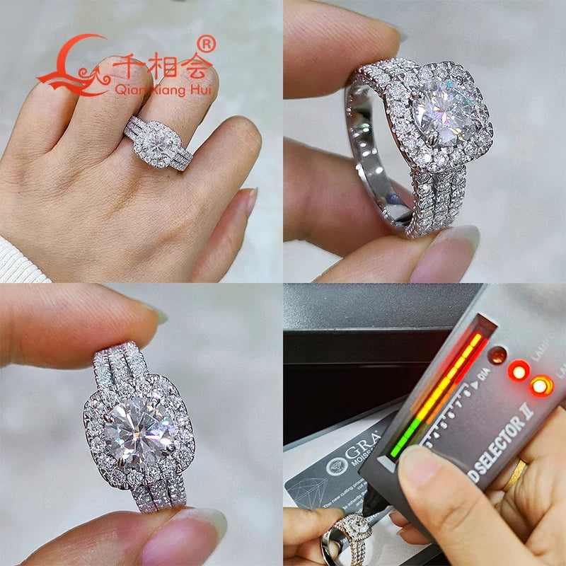 2ct 8mm cushion Moissanite Ring three rows half Band 925 Silver hip hop Men women Diamonds Male Jewelry