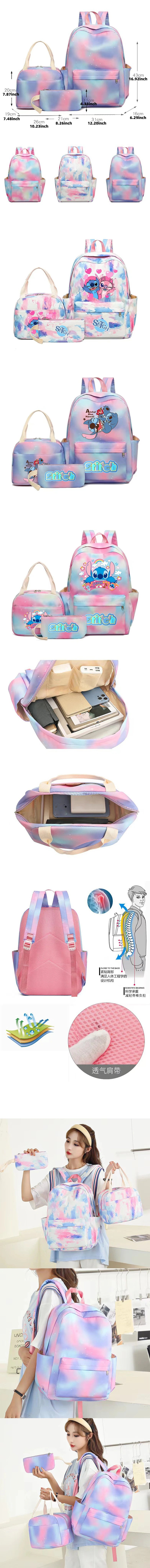 3pcs Stitch Large Capacity Backpack, Cartoon Anime Schoolbag, Kids Girl Travel Commute Knapsack With Lunch Bag And Pencil Case