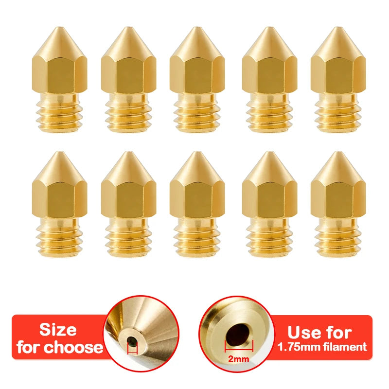 5/10PCS MK8 Brass Nozzle 0.2MM 0.3MM 0.4MM 0.5MM Extruder Print Head Nozzle For 1.75MM CR10 CR10S Ender-3 3D Printer Accessories