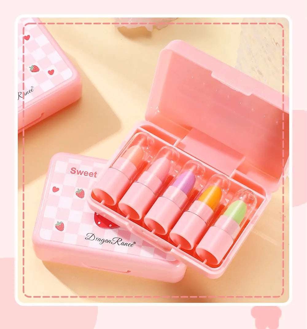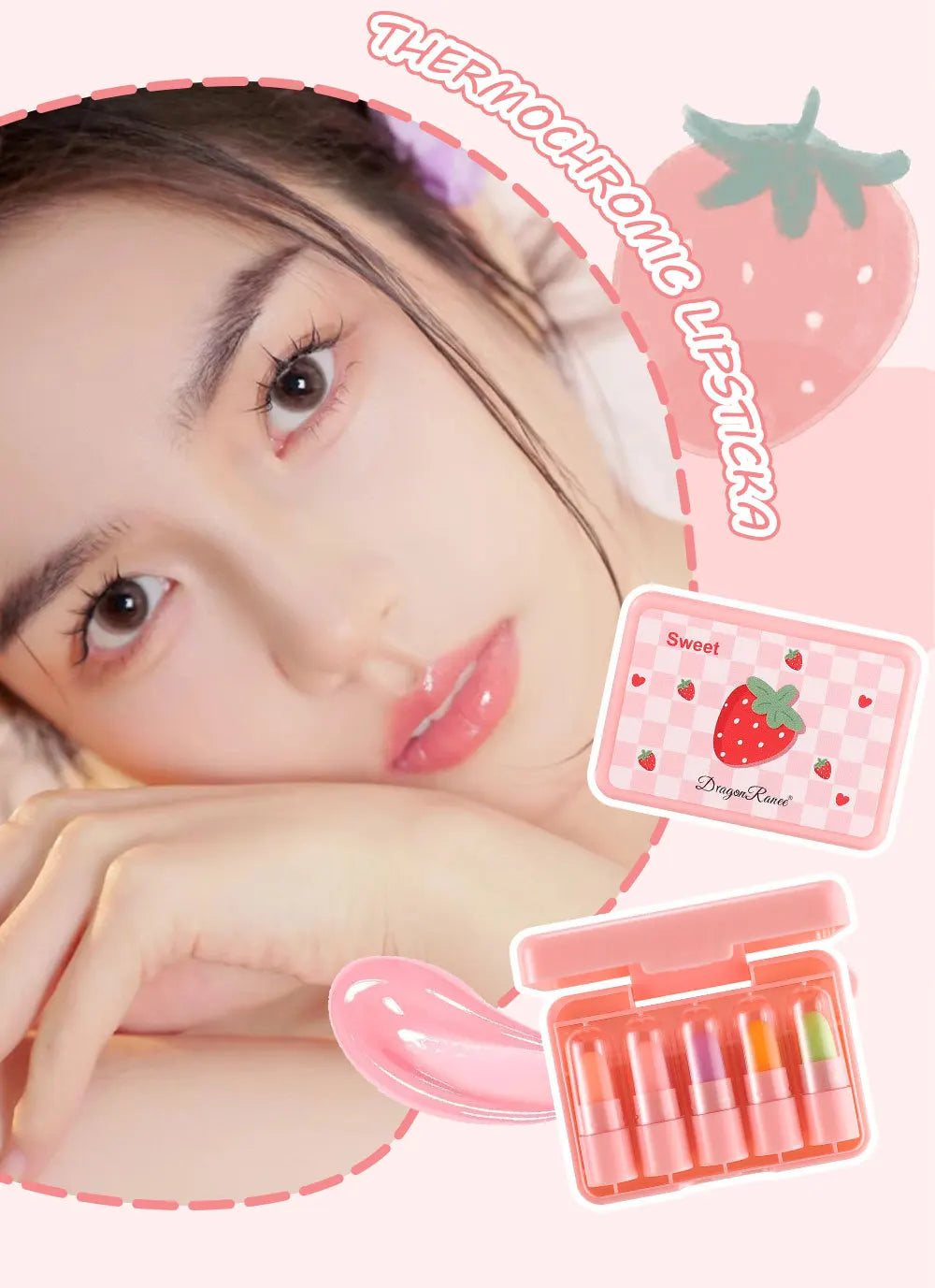 5pcs/set temperature change mini lipstick set fruit flavor is not easy to stick cup color change lipstick