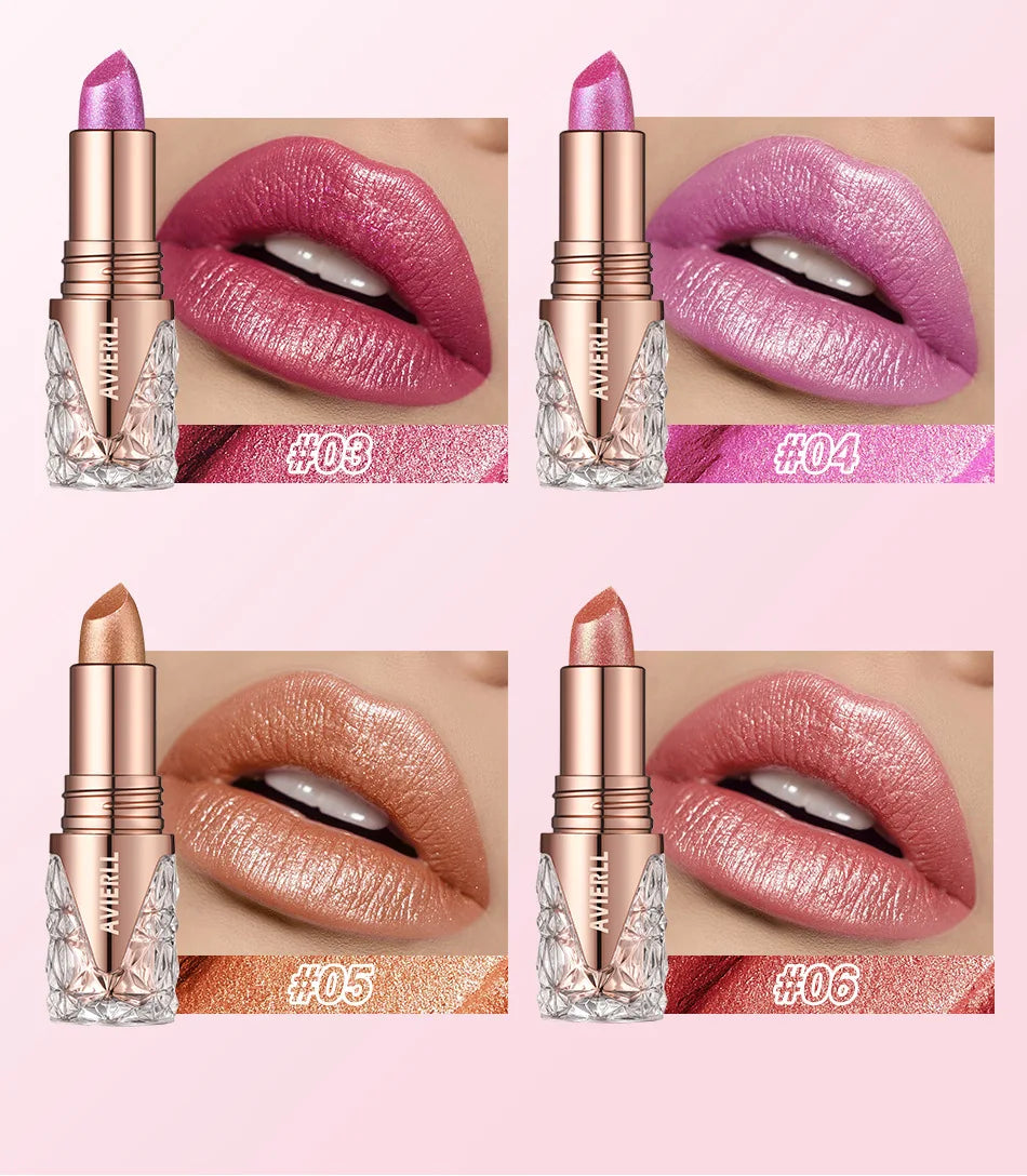 6 Colors 3 in 1 Pearlescent Sparkling Lipstick Matte Glitter Waterproof Long Lasting Pearl Shine Lip Gloss Shimmer Sexy Makeup