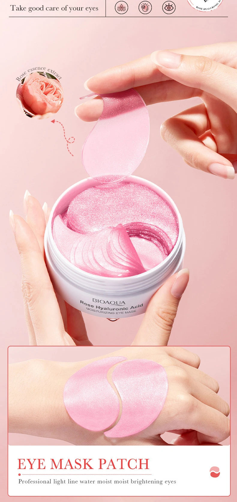 60pcs BIOAQUA Rose Hyaluronic Acid Eye Mask Anti Dark Circles Eye Bags Moisturizing Firming Eye Patches Skin Care Products