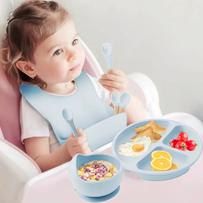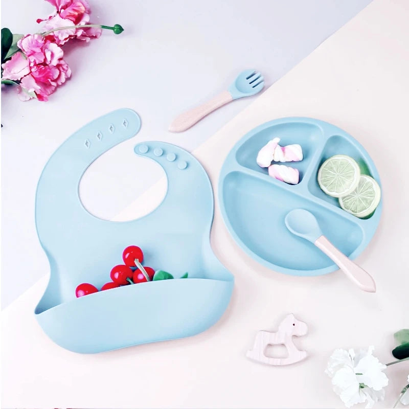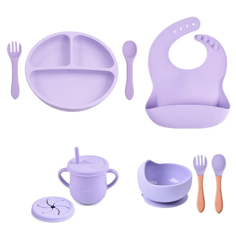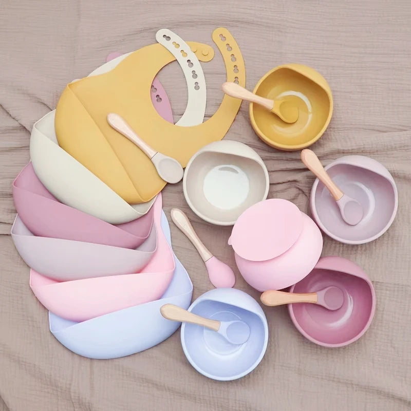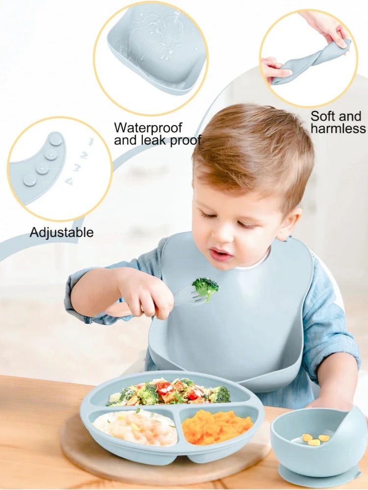 9pcs Baby Silicone Feeding Waterproof Set Children Suction Bowl Plate Spoon Fork Bibs Cup Kids Training Tablewear Bpa Free Gifts
