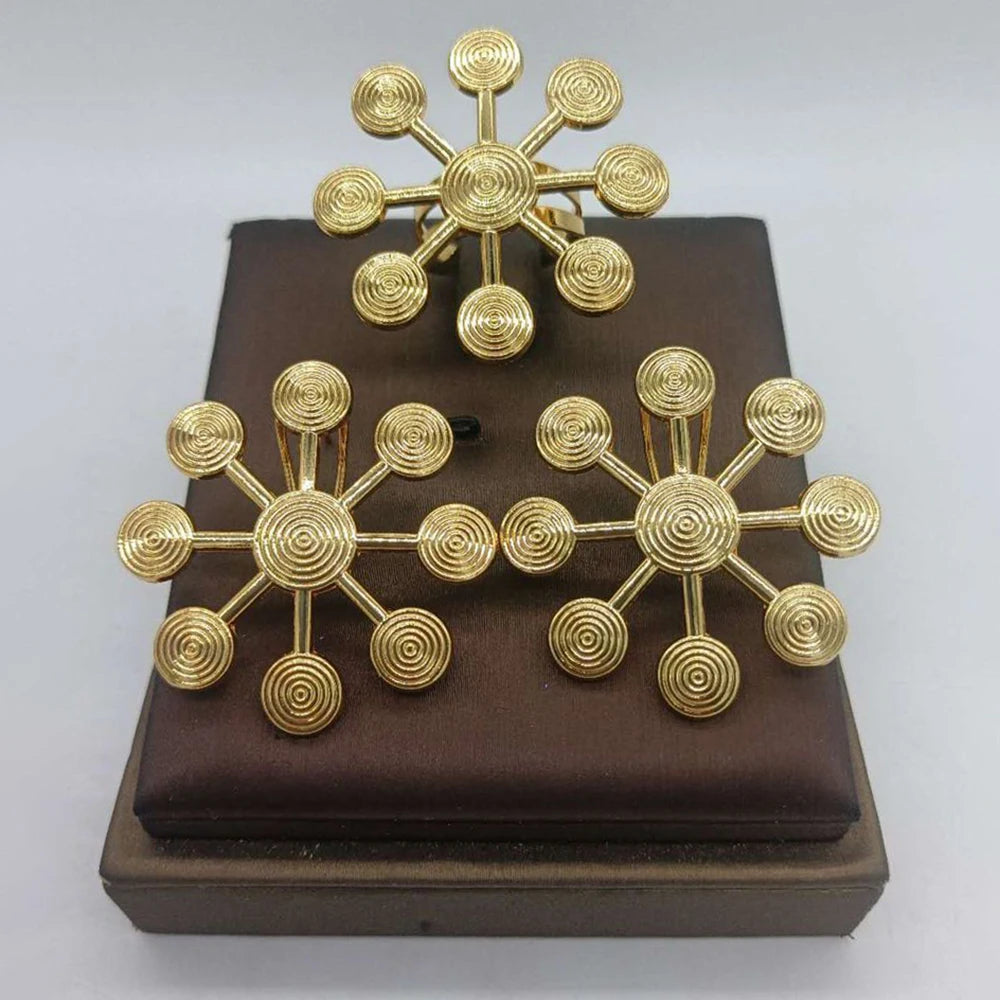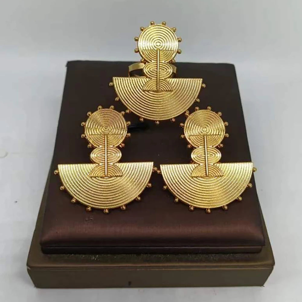 African Gold Plated Earrings and Ring Jewelry Set for Women New Design Earrings and Finger Ring Set for Brazilian Jewellery Gift
