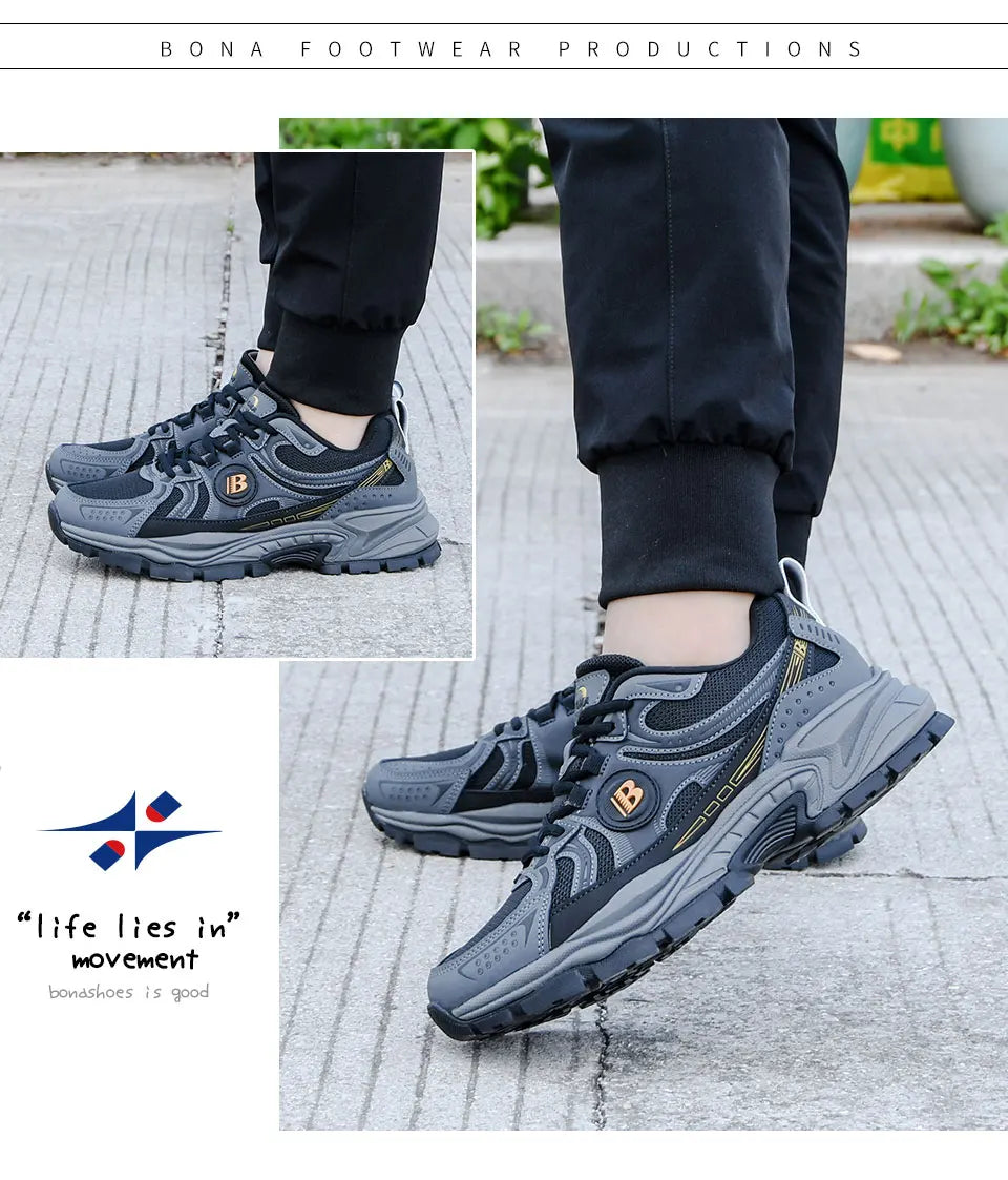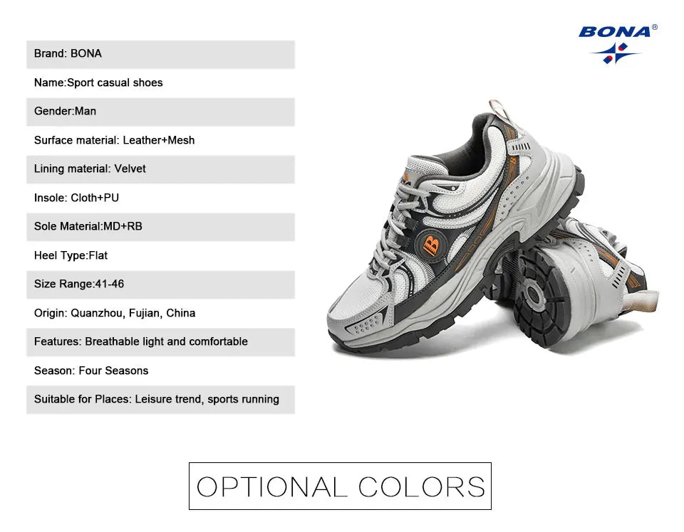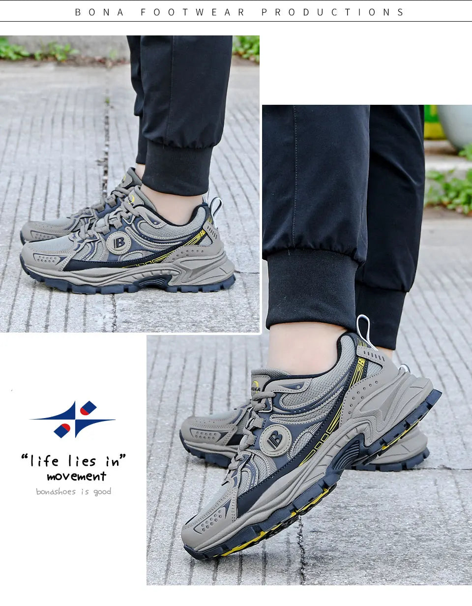 BONA New Designers Action Leather Mesh Jogging Shoes Men Breathable Running Shoes Walking Sports Sneakers Athletic Trainers