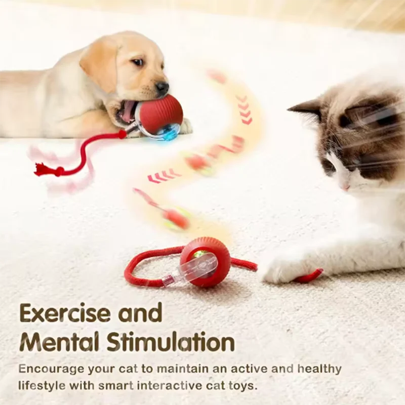 Cat Interactive ball Toy, Automatic Rolling Ball with Tail, Rechargeable Smart Pet Interactive Toy, Intelligent toy for Cat