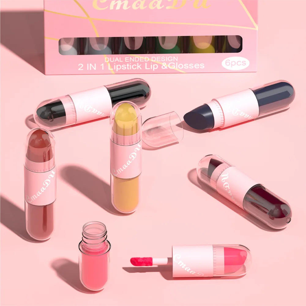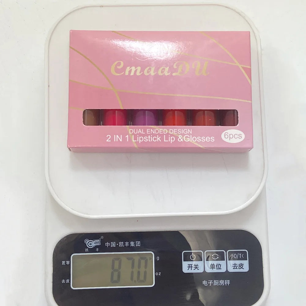 CmaaDu 2 IN 1 lipstick lip & glosses 6-piece matte Lipstick Face Color waterproof small size light weight easy to carry