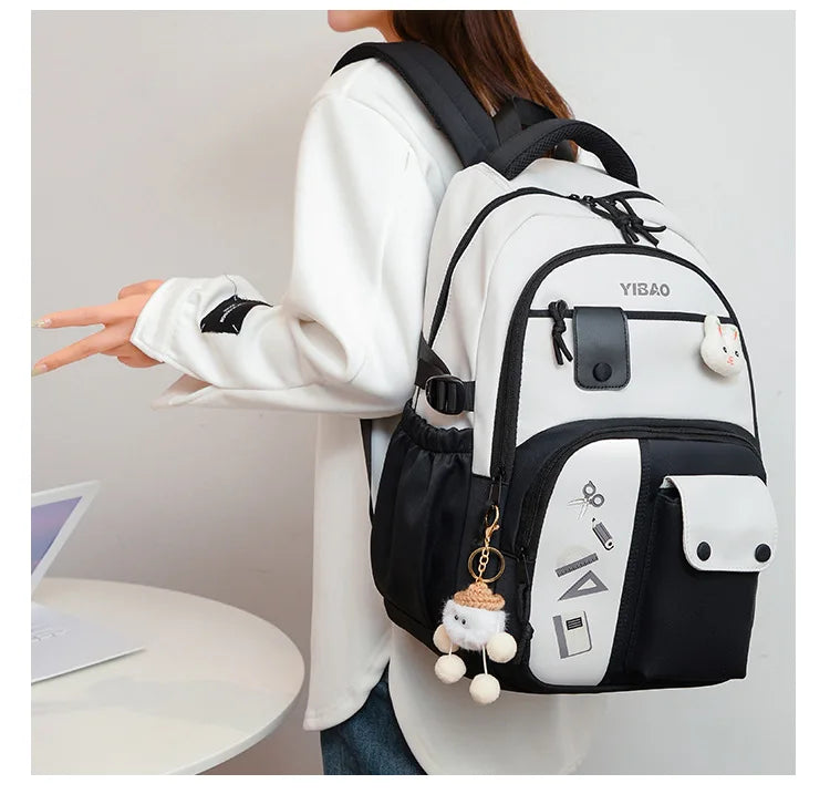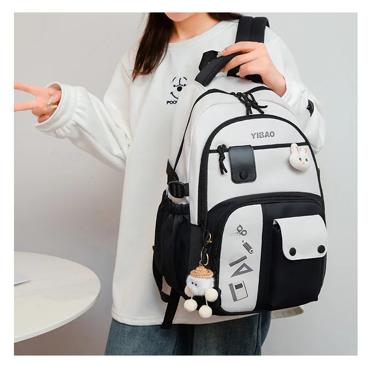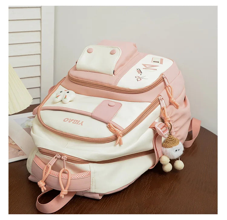 Cute rabbit children school backpack for teenage girls Fashionable splicing color contrast fresh lady knapsack kids schoolbags