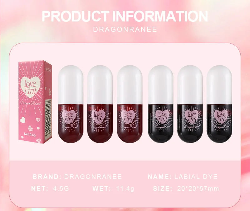 Dragonranee Lip Dye Liquid Lip Glaze Cute Waterproof Non-Stick Liquid Lipstick 6 Colors Available