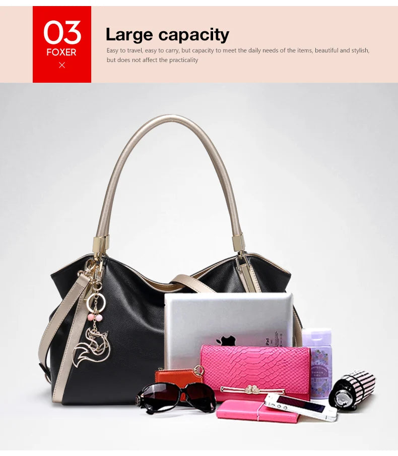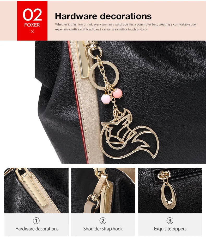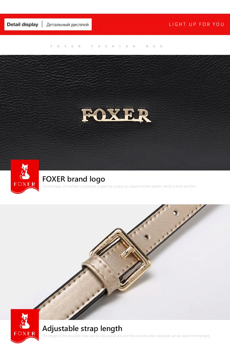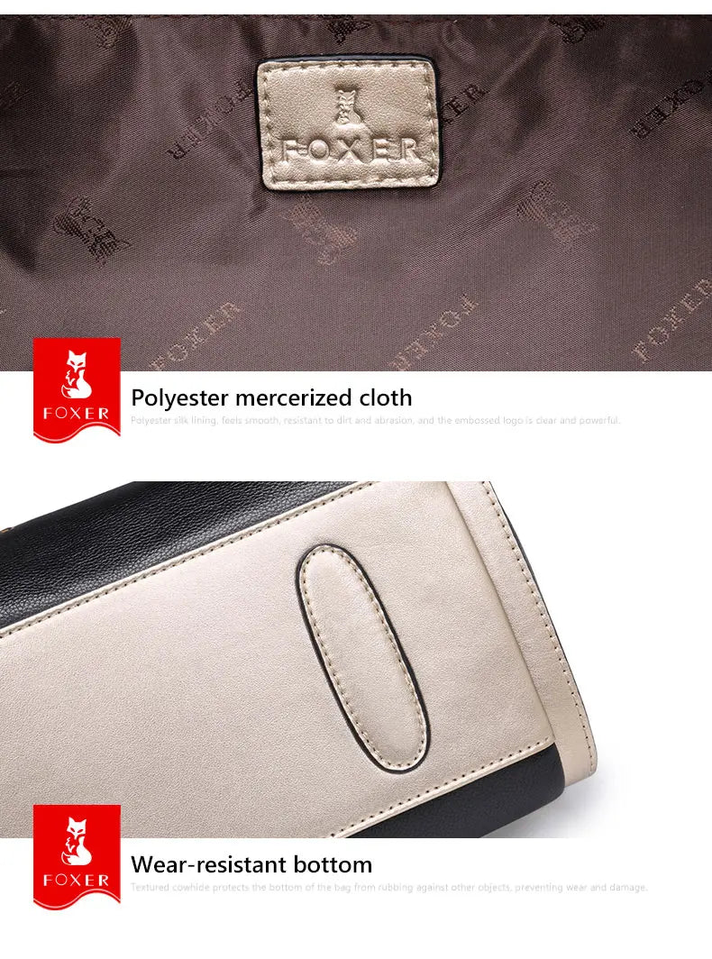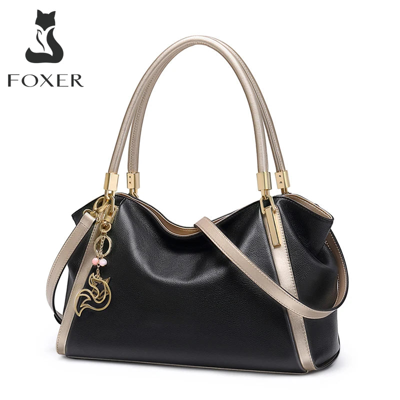 FOXER Women Genuine Leather Handbag Lady Large Capacity Crossbody Shoulder Bags Cowhide Top Handle Tote Festival Gift For Female