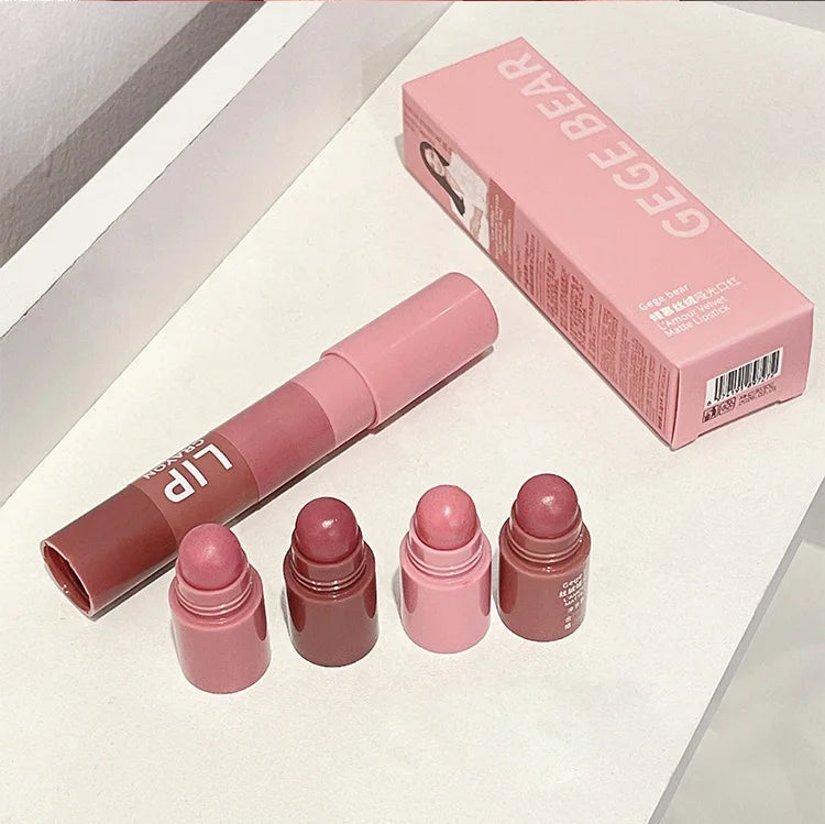 Gege Bear 4 in 1 Velvet Matte Crayon Lipstick Super Stay Makeup Pink Red Long Wear Waterpoof Non-Stick Cup Tiny Lip Stick