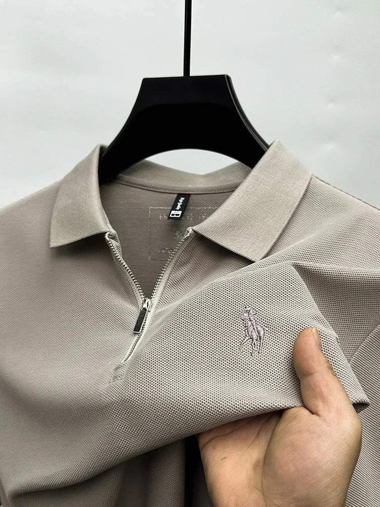 High end brand embroidered men's short sleeve half zip polo shirt short sleeve summer breathable business casual Paul T-shirt