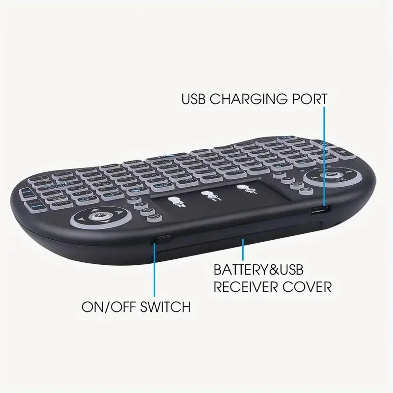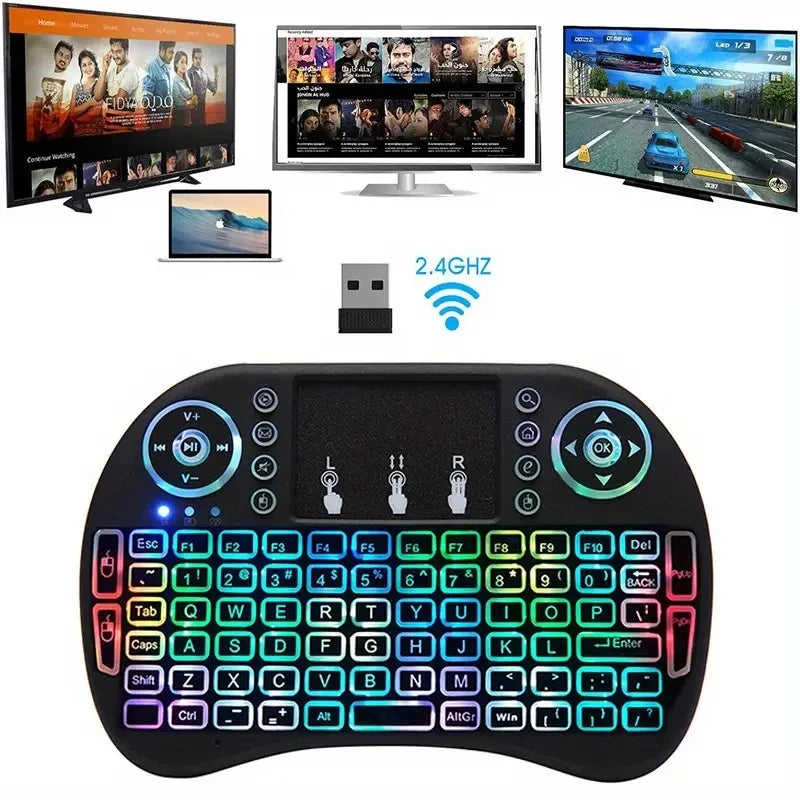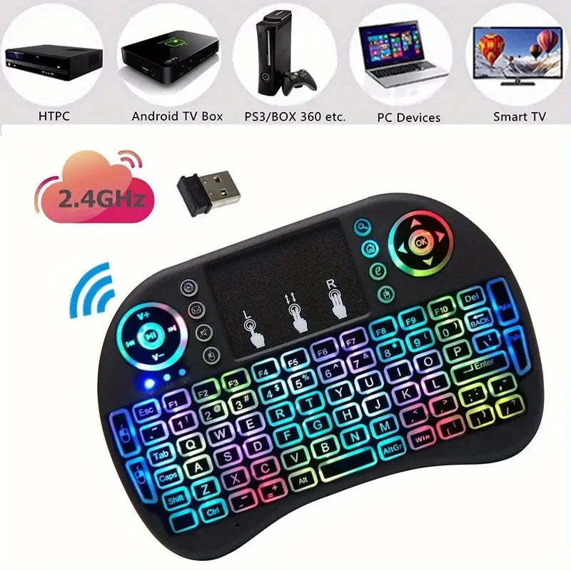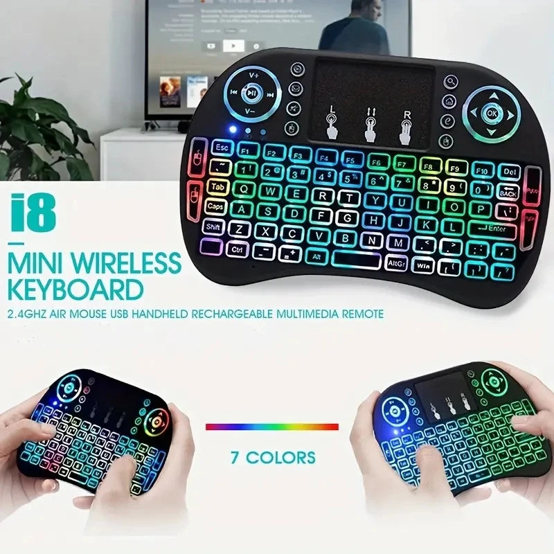 I8 Mini Wireless Keyboard 2.4G English Lithium RGB Colorful Backlit Air Mouse with Touchpad for Android TV Box PC