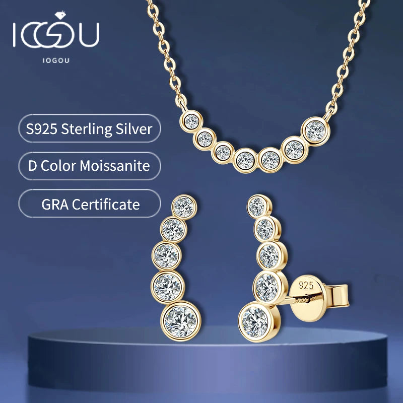 IOGOU 2024 Bezel Moissanite Jewelry Set Silver 925 Bubble Pendant Necklace Stud Earrings Women's Gift Valentine Day Christmas