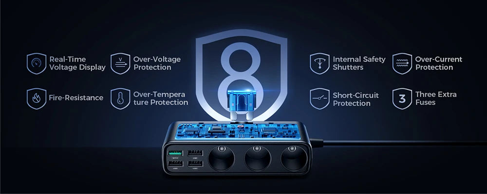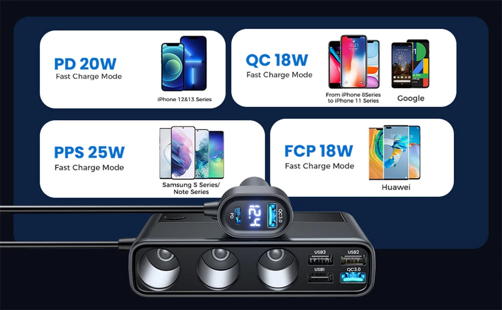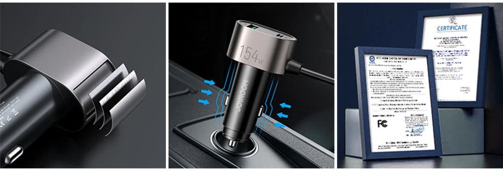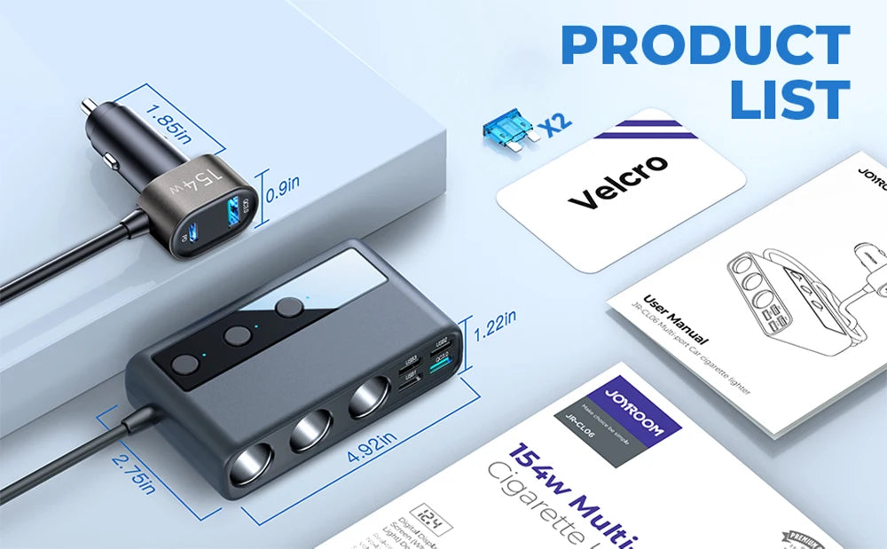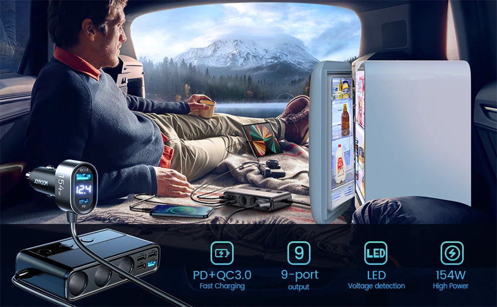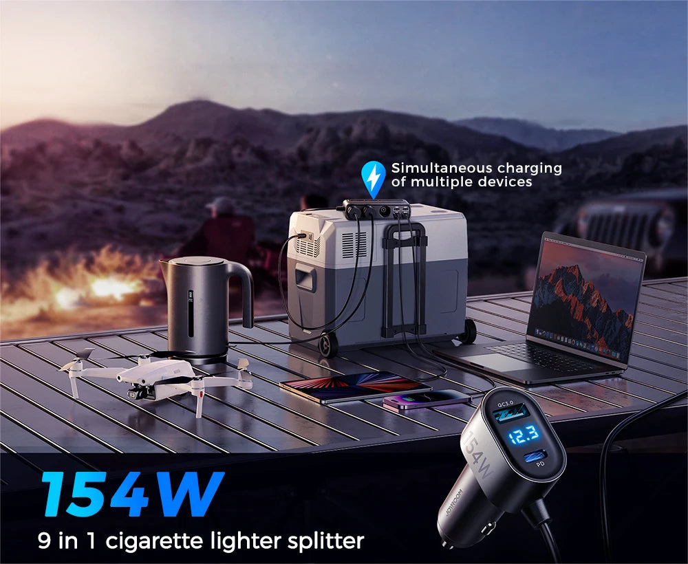 Joyroom 154W 9 in 1 Car Charger Adapter Charge Independent Switches DC Cigarette Outlet PD 3 Socket Cigarette Lighter Splitter