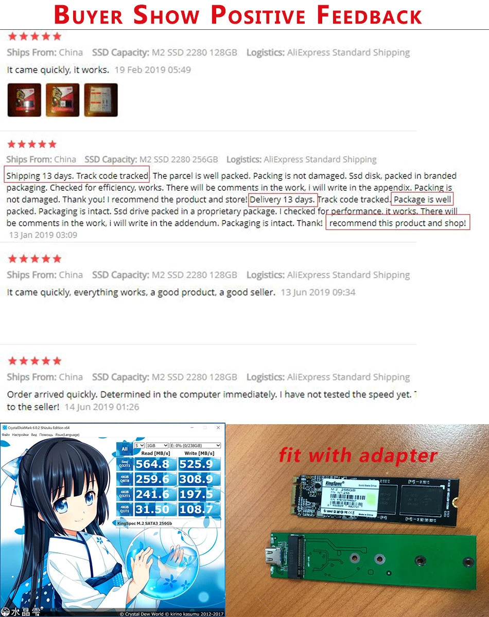 Size: 80*22*3.2mm,2280 M.2 NGFF 512GB SSD 22mm*80mm SATAIII 6Gb/s