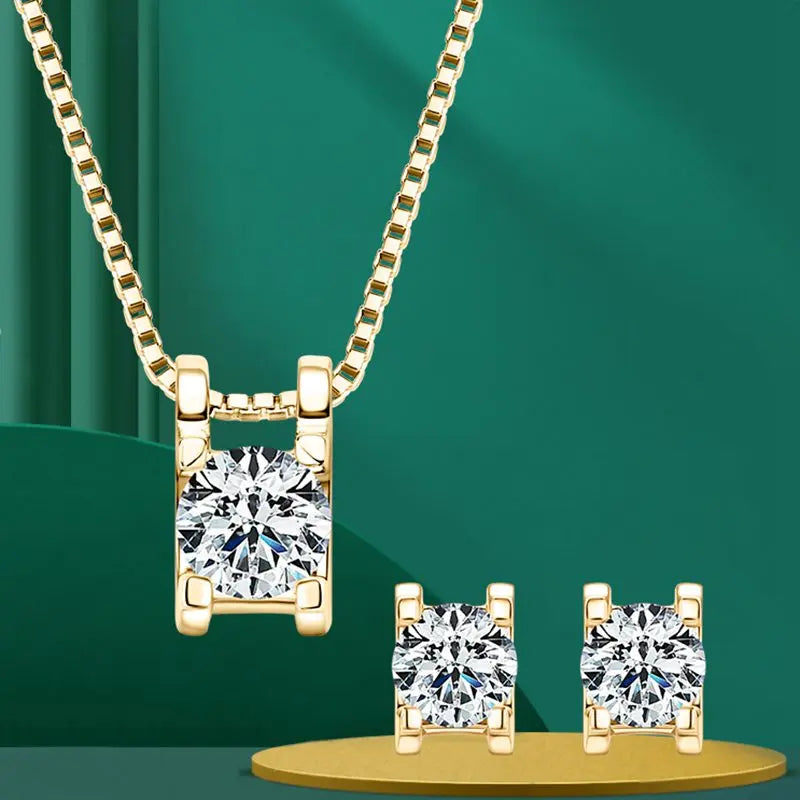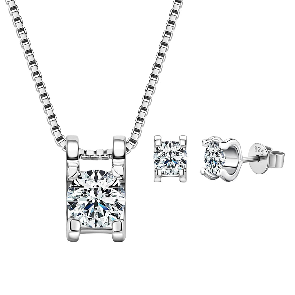 Lnngy 0.5ct-1ct Moissanite Pendant Necklace Earring For Women 925 Sterling Silver Stud Earrings Collares Mujer Bling Jewelry Set