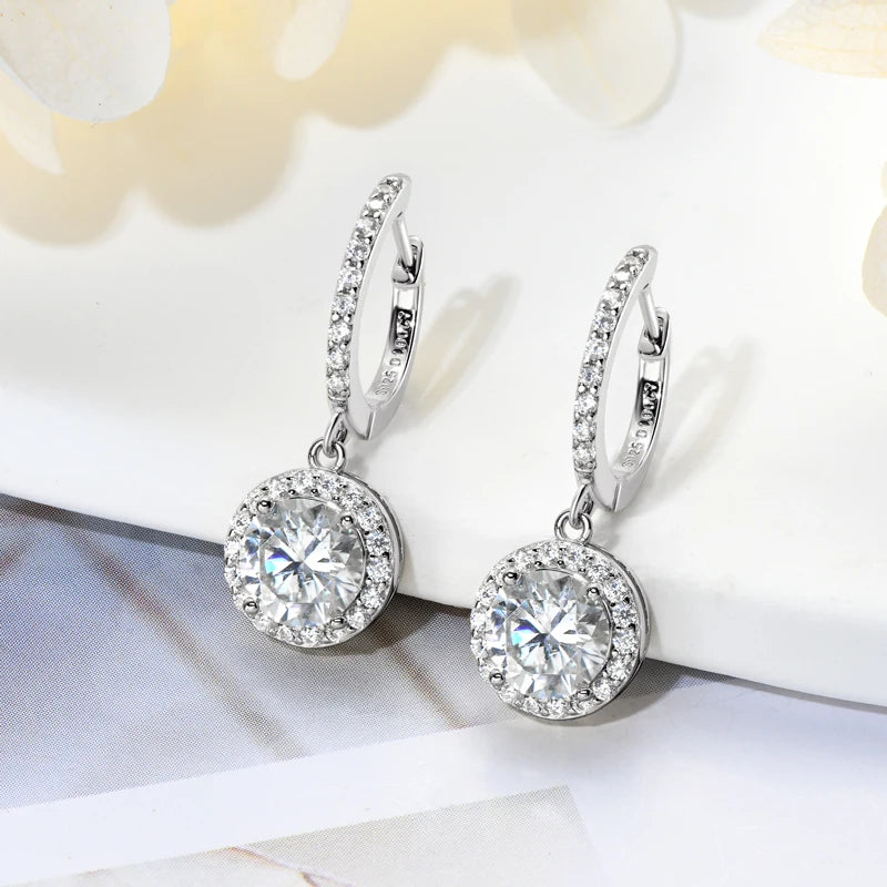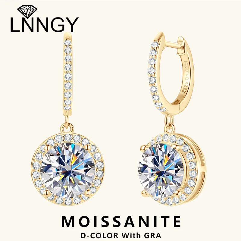 Lnngy 1CT 2CT 3CT Moissanite Earring 925 Certified Silver Drop Earrings For Women Girls Wedding Anniversary Dainty Jewelry Gift
