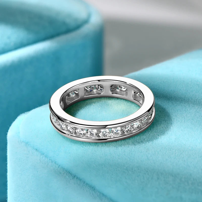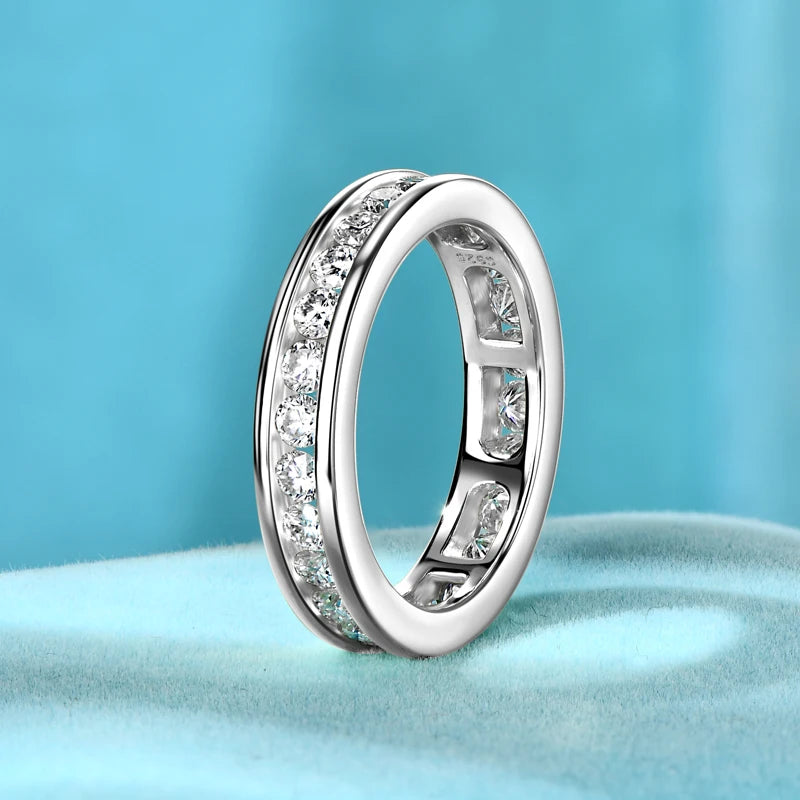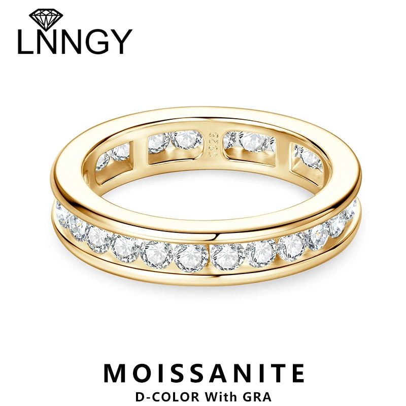 Lnngy 2.5mm Moissanite Diamond Rings Certified 925 Sterling Silver Eternity Band For Women Couples Wedding Ring Jewelry Gift