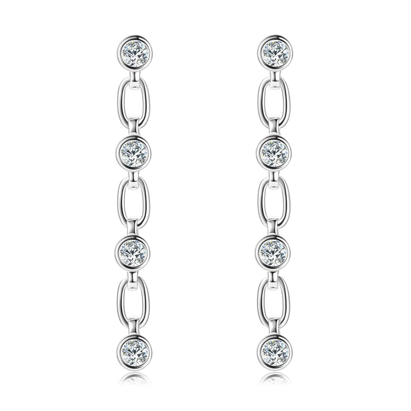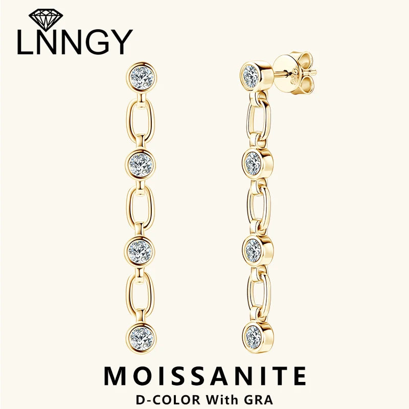 Lnngy 3mm Bezel Moissanite Earrings For Women Exquisite 925 Sterling Silver Long Tassel Earring Wedding Drop Jewelry Gift