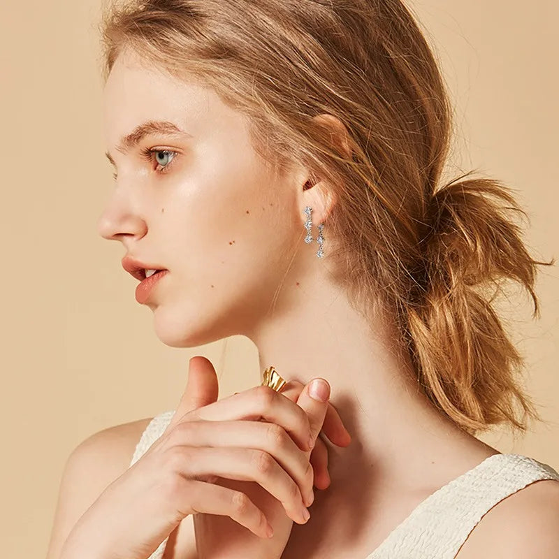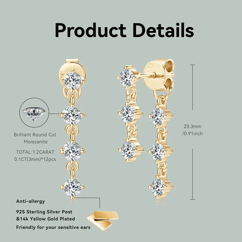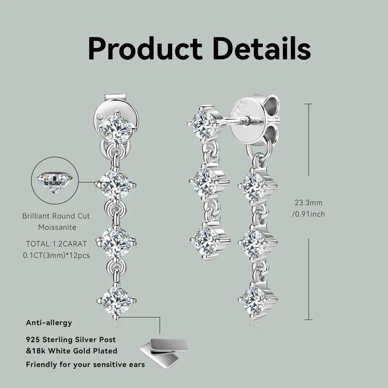 Lnngy 3mm Moissanite Drop Earrings 925 Sterling Silver Tassel Chain Earring For Women Girls Wedding Party Charms Jewelry Gift