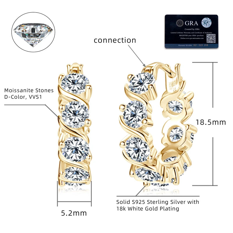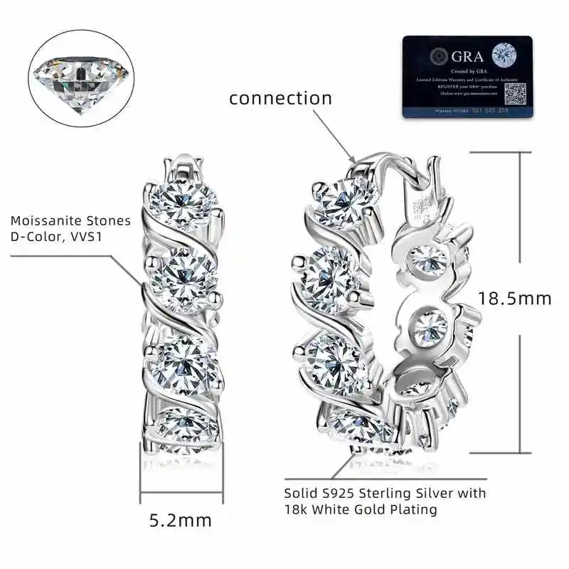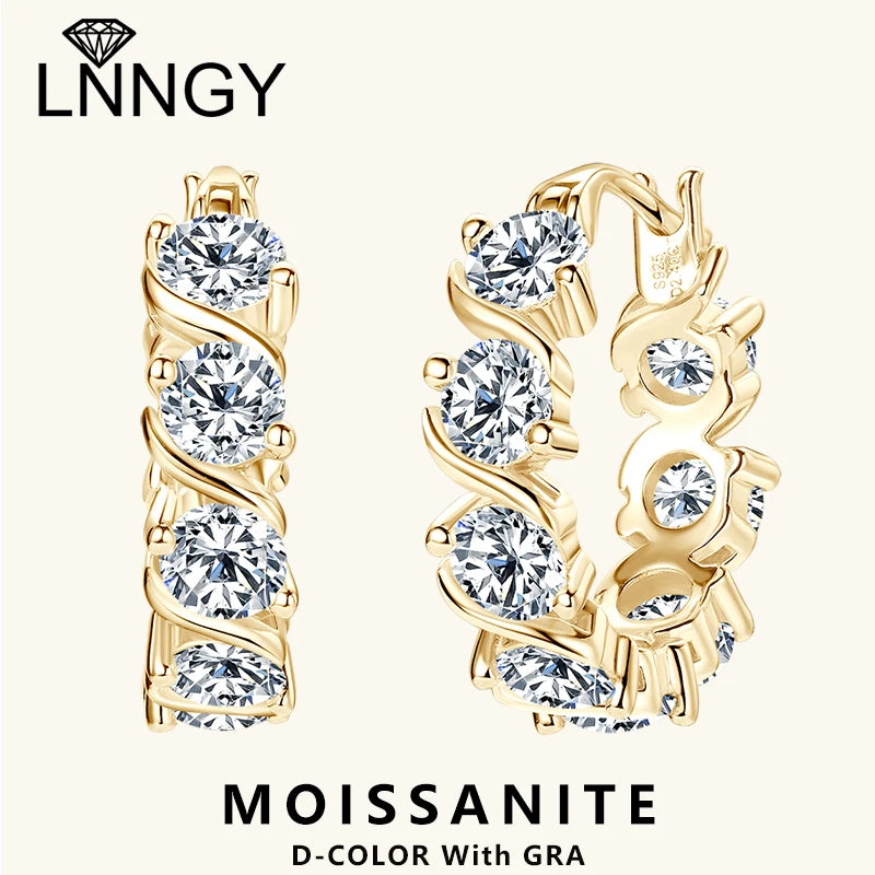Lnngy 4.8CTTW. Sparkling Round Cut Moissanite Earring For Couples Lovers' Temperament Sparkling Wedding Earrings Jewerly Gift