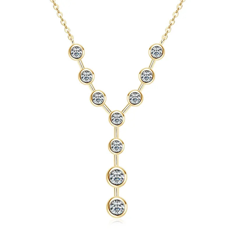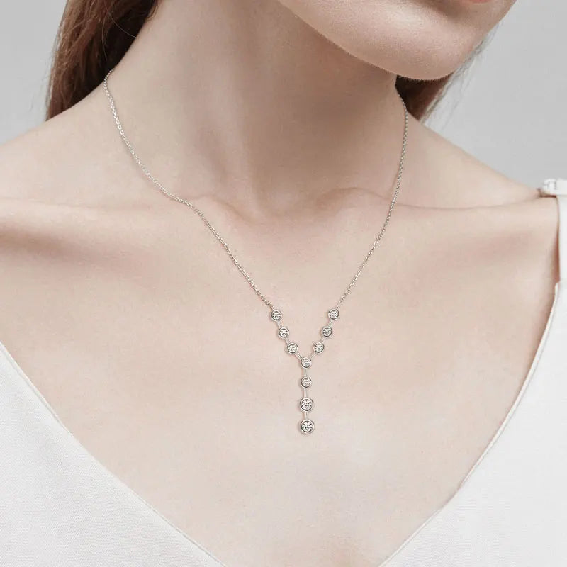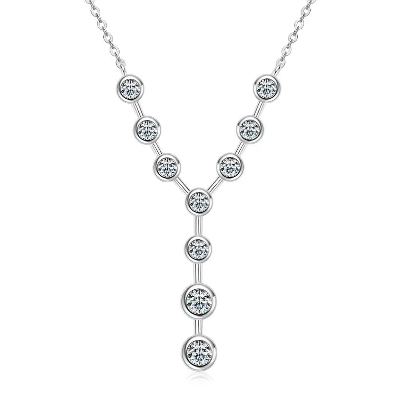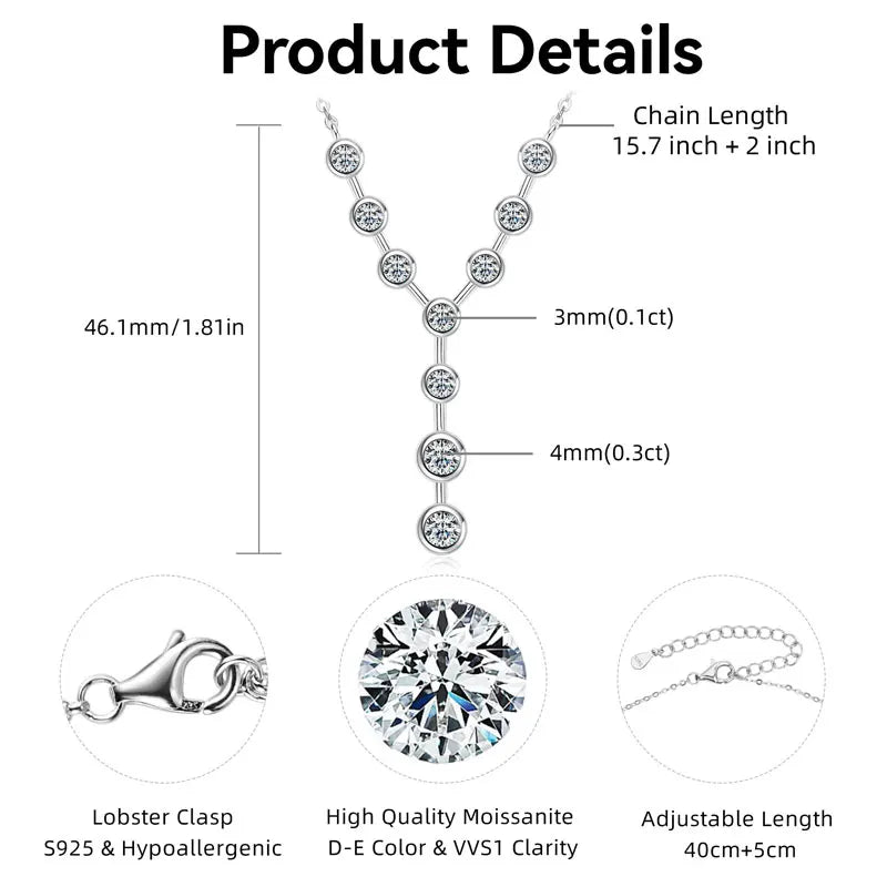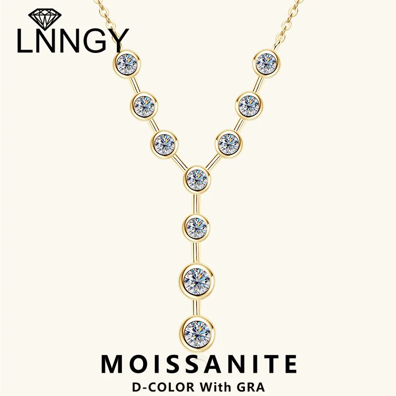Lnngy 4mm&3mm Moissanite Pendent Necklace 925 Sterling Silver Fashion Sexy Y-Shaped Necklaces for Women 2025 Party Jewelry Gift