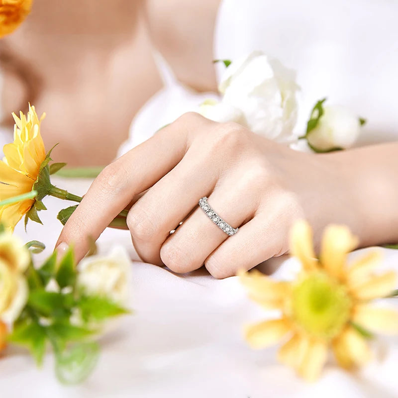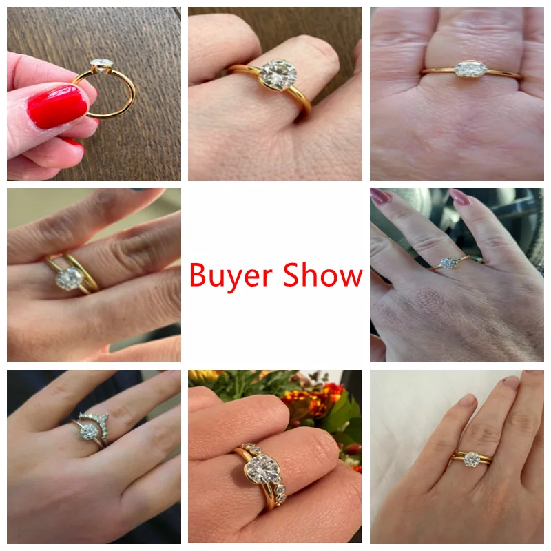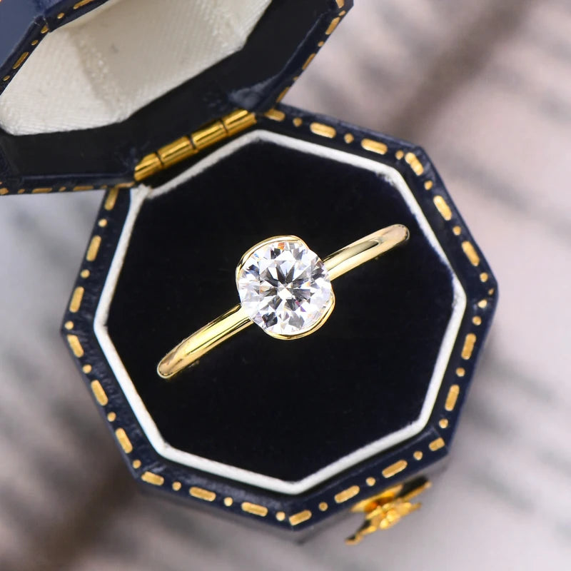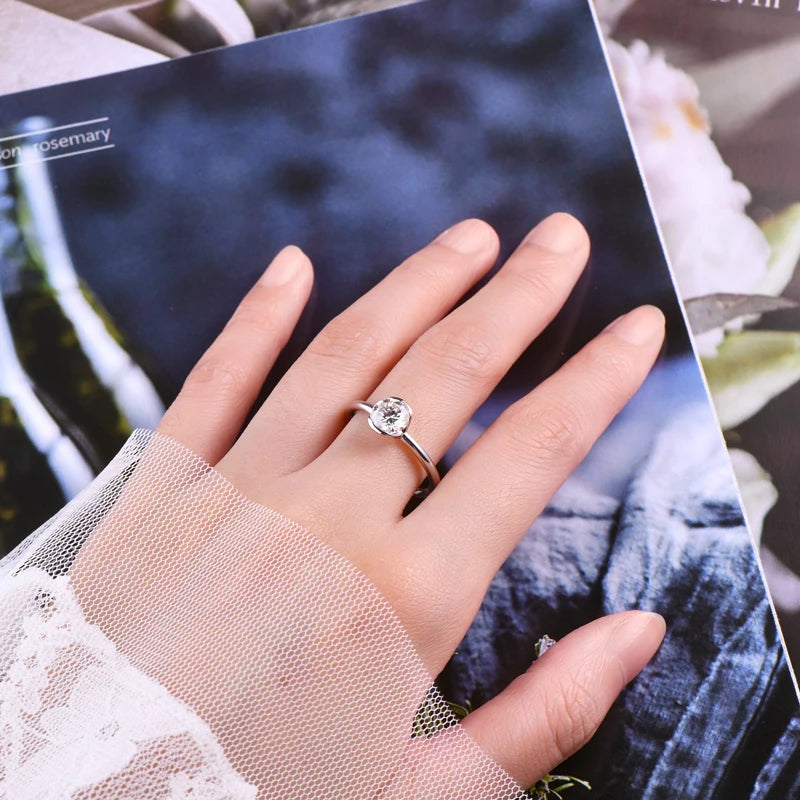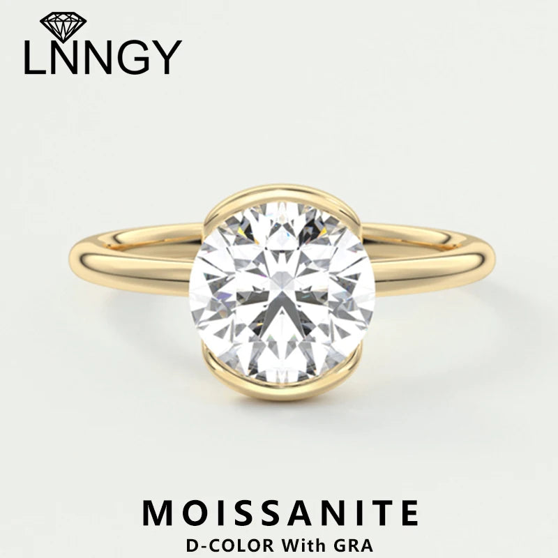 Lnngy 6.5MM 1CT Half Bezel Moissanite Ring for Women Exquisite 925 Sterling Silver Solitaire Engagement Rings Jewelry Gift