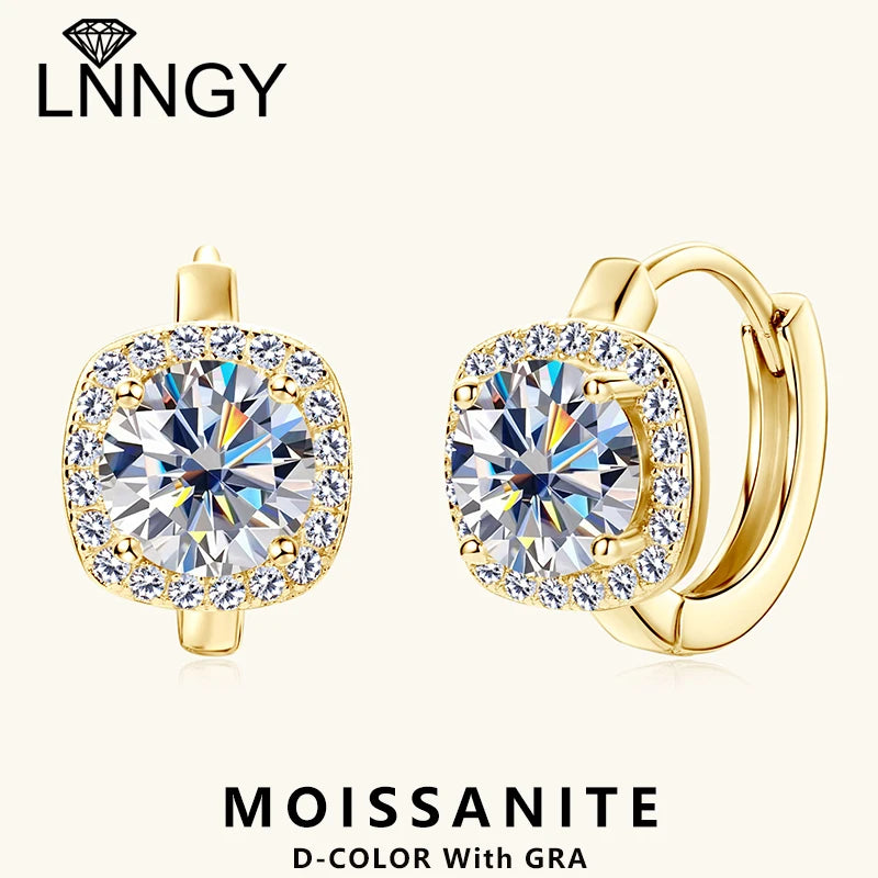 Lnngy 6.5mm Moissanite Earring With GRA Certificate 100% Real 925 Sterling Silver Hoop Earrings For Women Sparkling Jewelry Gift