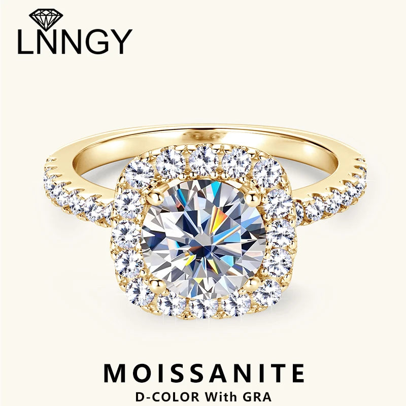 Lnngy 8mm 2ct Moissanite Halo Ring Certified 925 Sterling Silver Engagement Rings For Women Girls Wedding Party Jewelry Gift