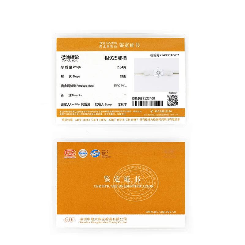 Lnngy 8MM 2CT Moissanite Ring With Certificate 925 Sterling Silver Solitaire Rings for Women Girls Sparkling Wedding Bands Gift