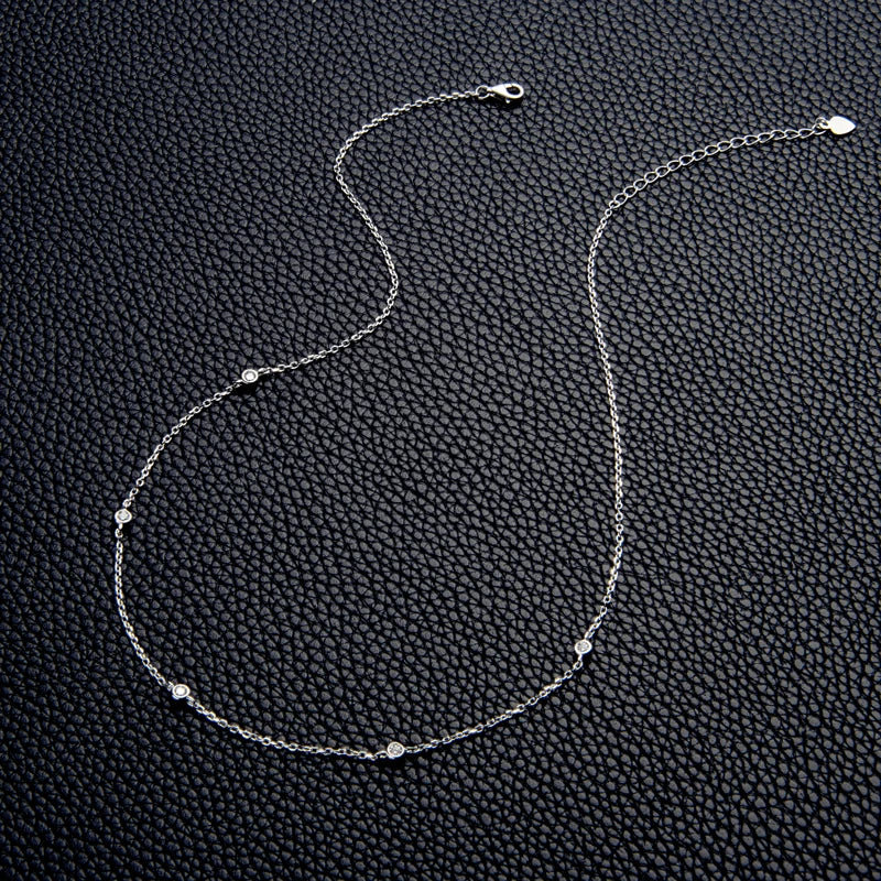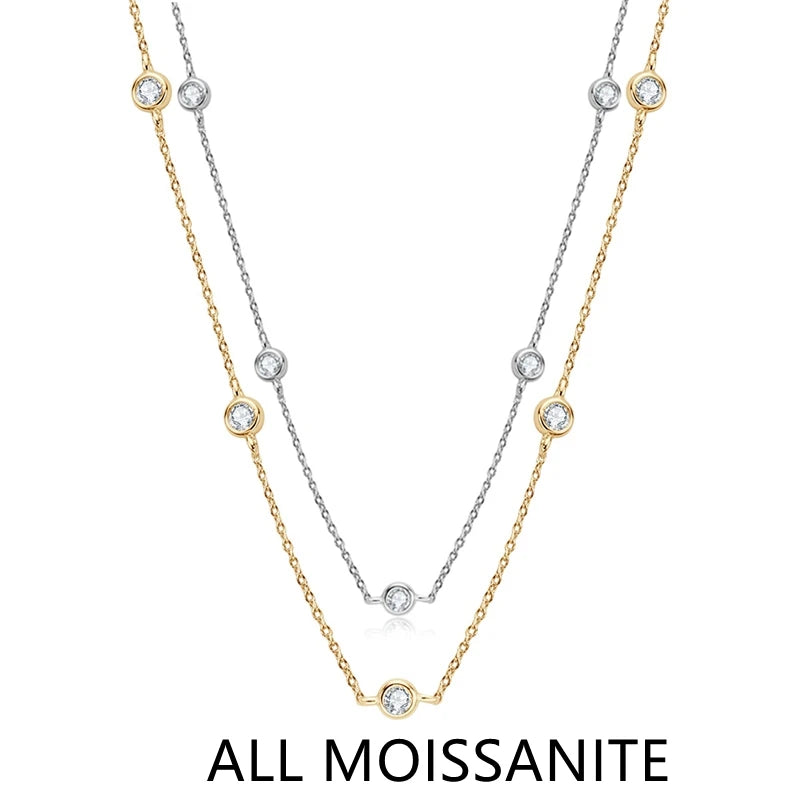 Lnngy 925 Sterling Silver Necklaces Round Cut 2.5mm/4mm Bezel Moissanite Choker Necklace for Women Multilayer Neck Jewelry