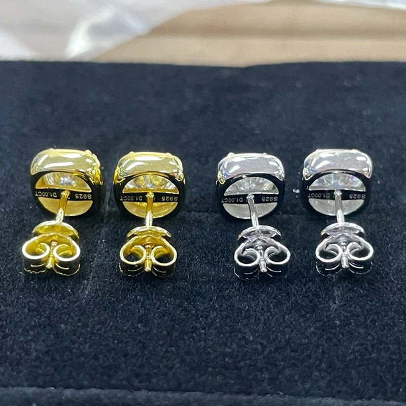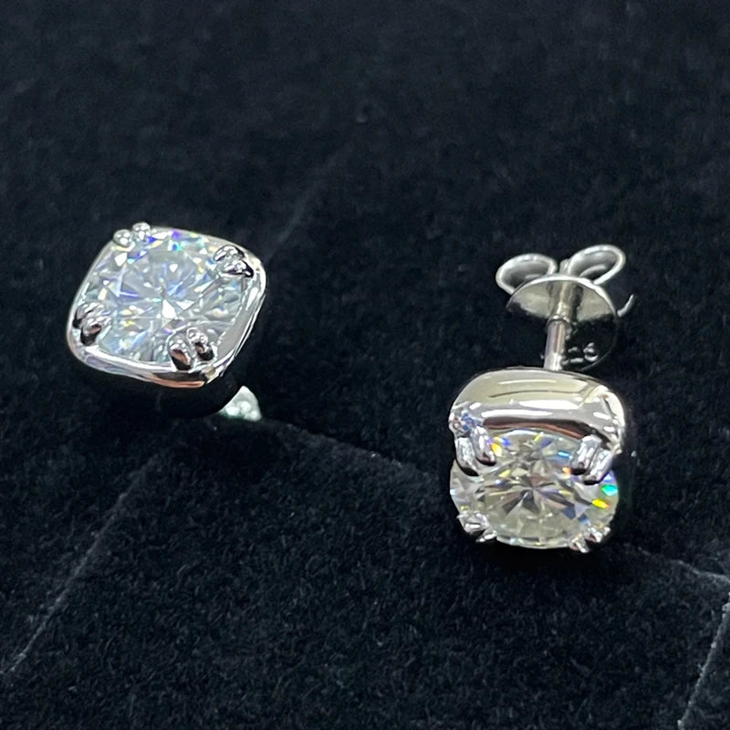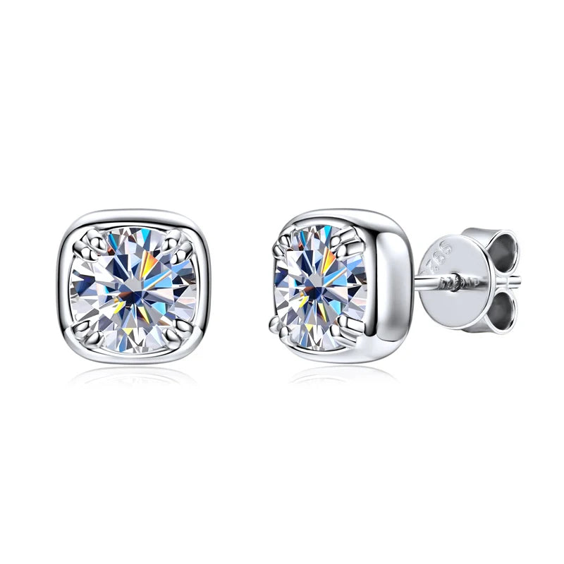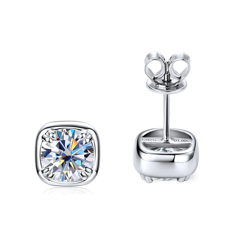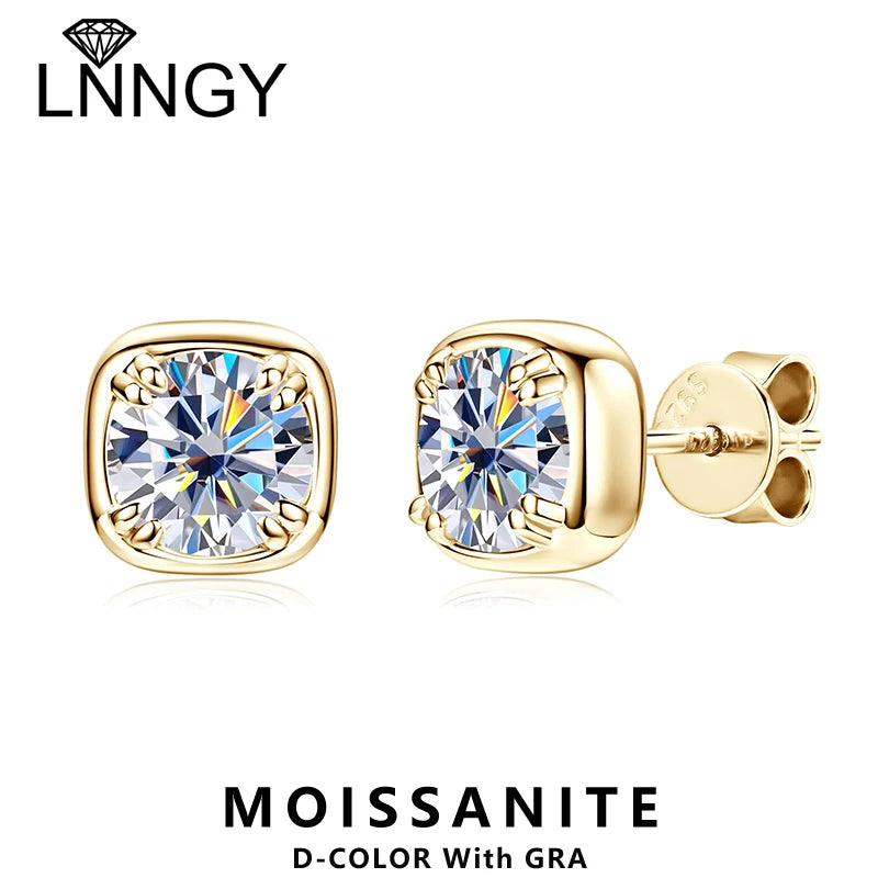 Lnngy 925 Sterling Silver Square Shape Stud Earring Certified Sparkling 6.5MM 1CT Moissanite Earrings For Women 2025 New Jewelry
