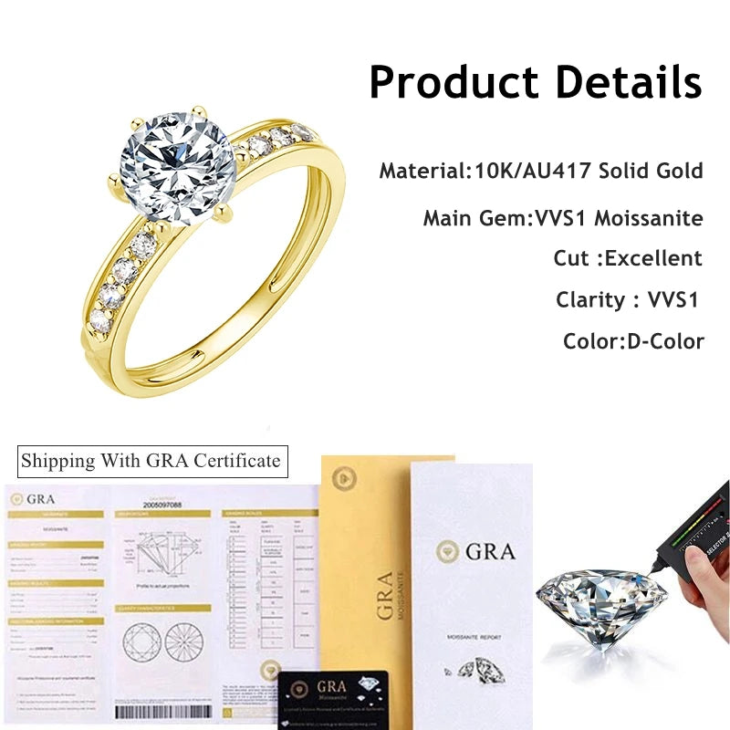 Lnngy Certified 10K Pure Gold Moissanite Ring for Women AU417 Lab Created Diamond Halo Engagement Rings Exquisite Jewelry Gift