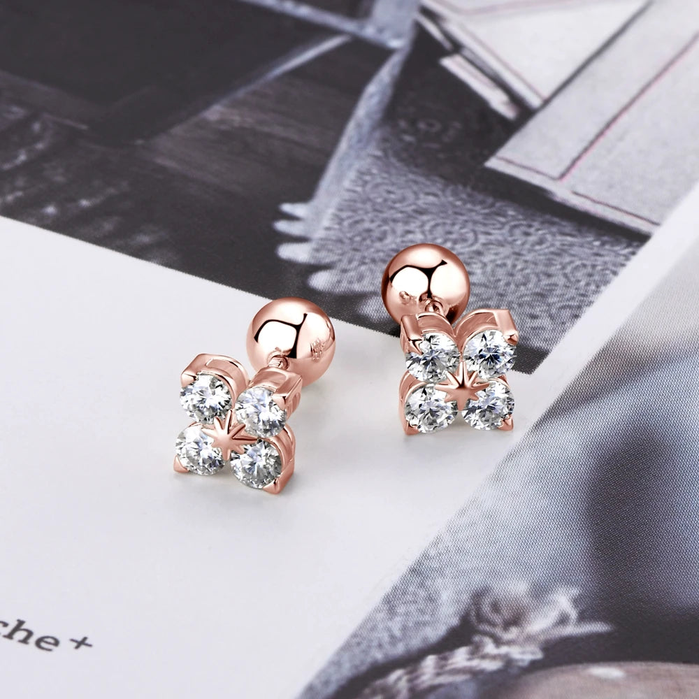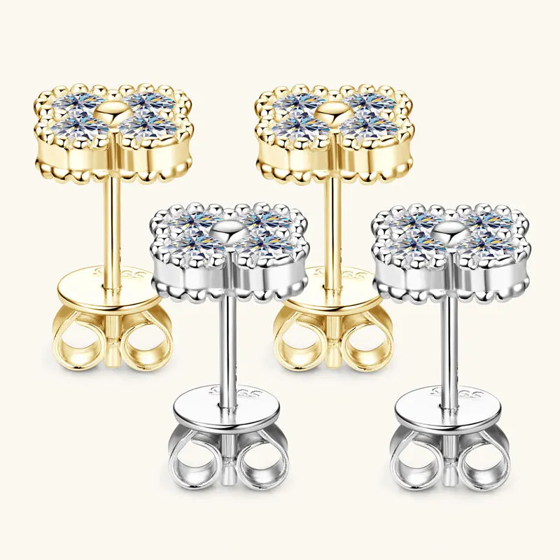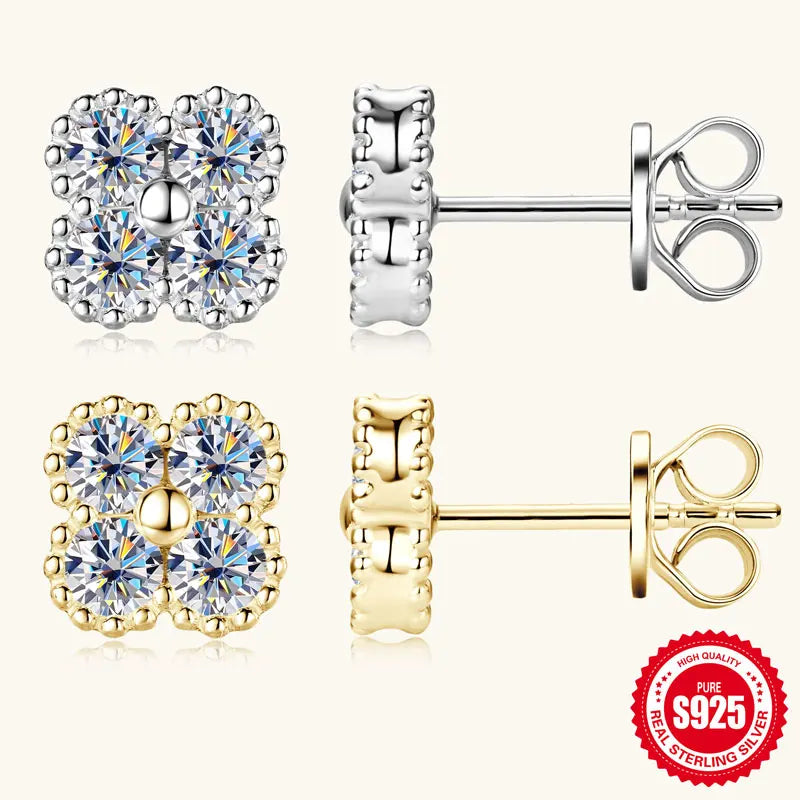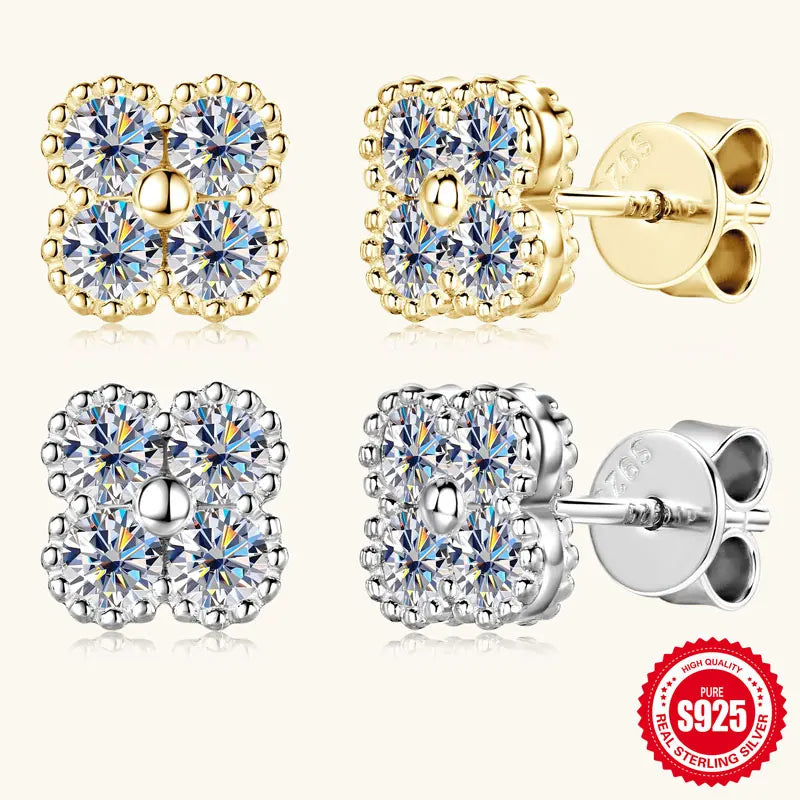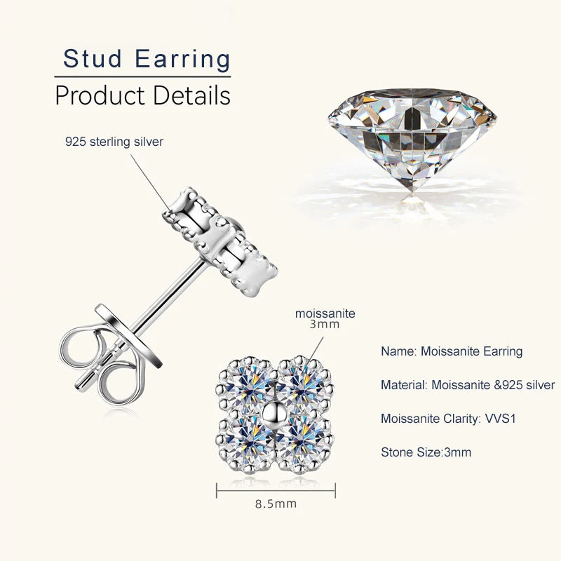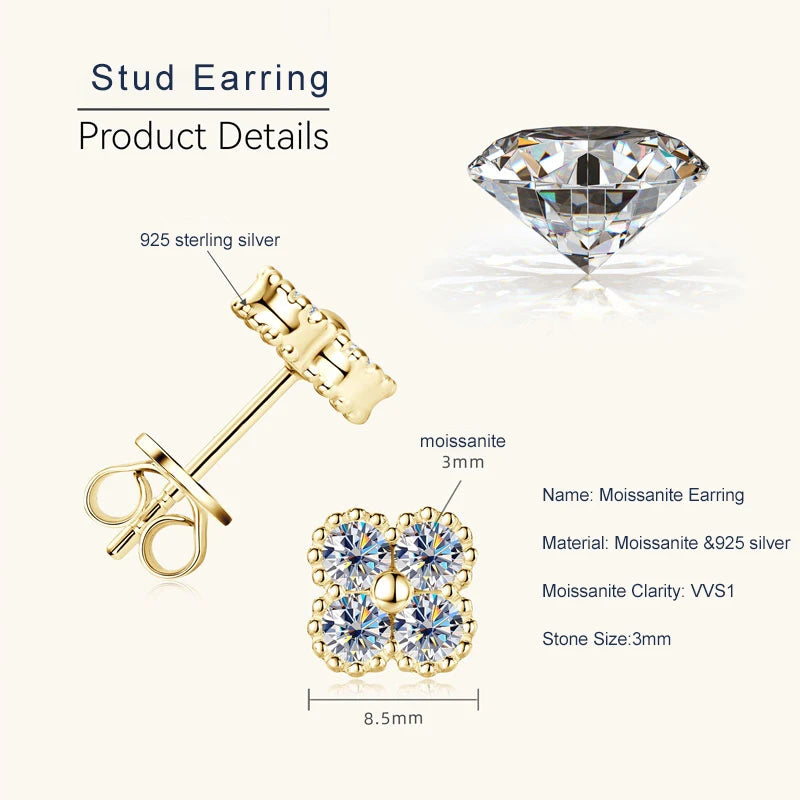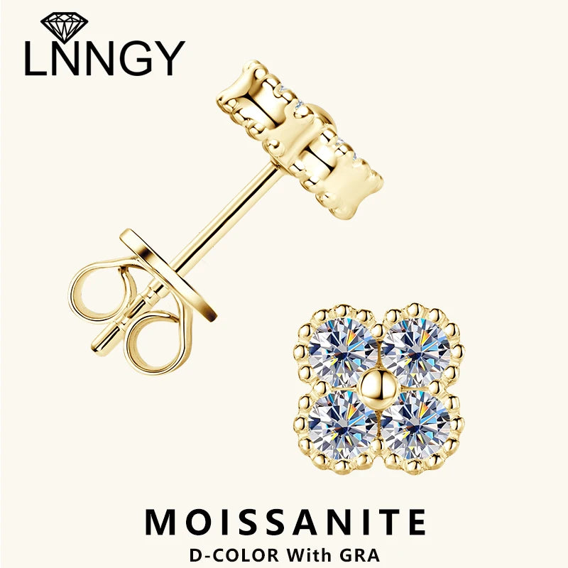 Lnngy Certified Four Leaf Clover 3mm Moissanite Earrings For Women 925 Sterling Silver Stud Earrings Moissanites Jewelry Gift
