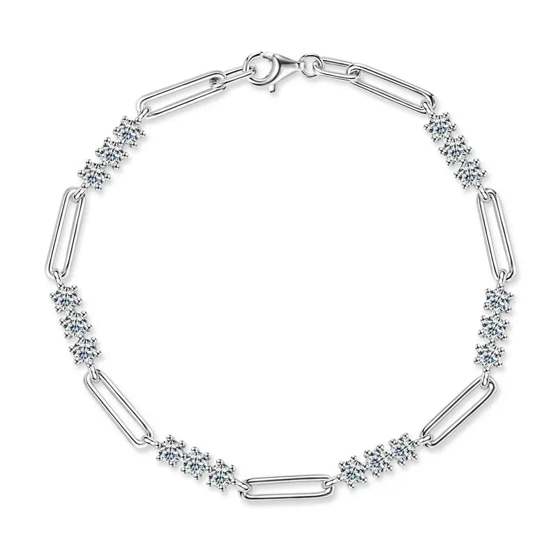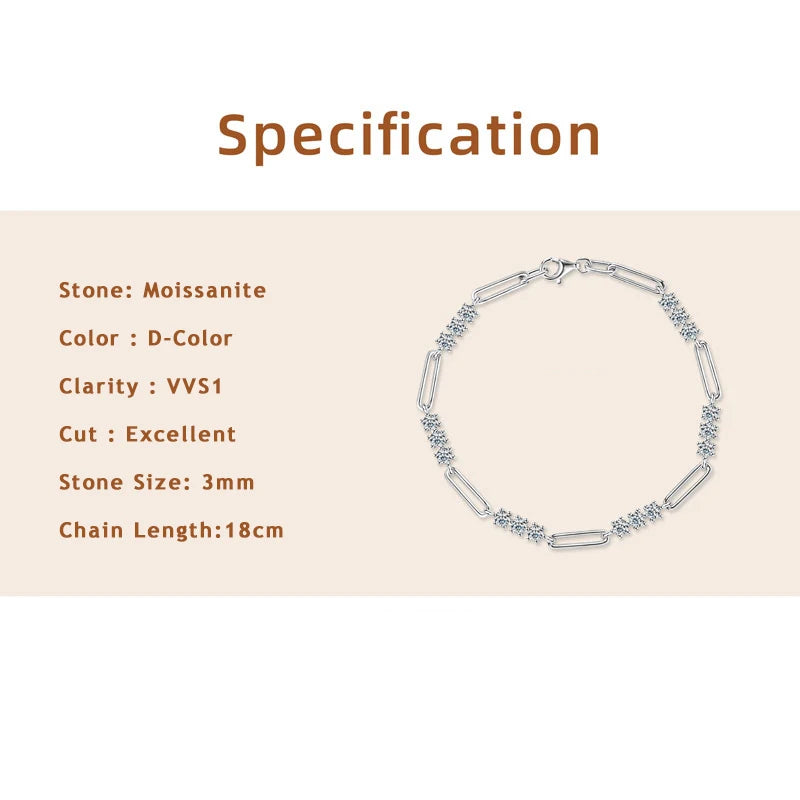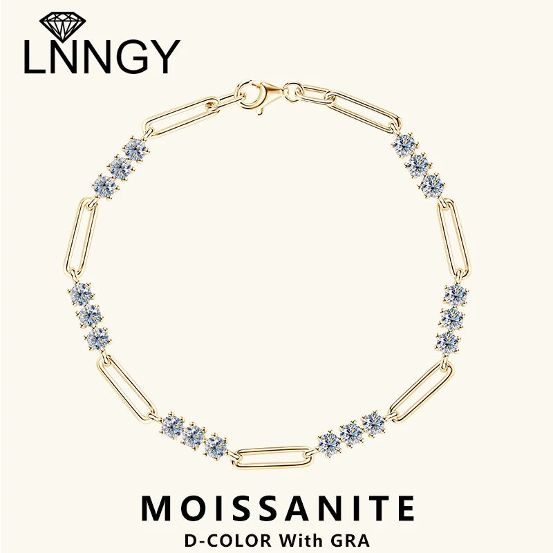 Lnngy Certified Round 3MM Moissanite Bracelet For Women 925 Sterling Silver Adjustable Chain Bracelets Fashion Hand Jewelry Gift