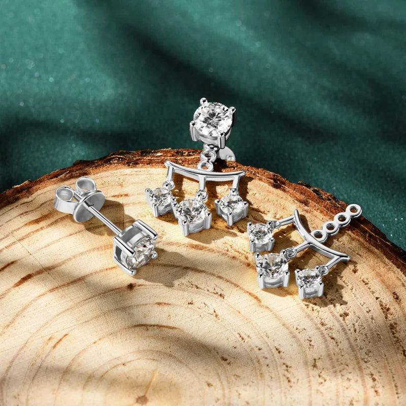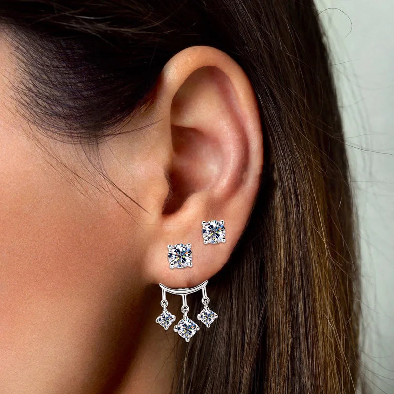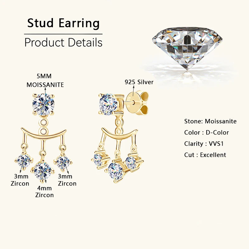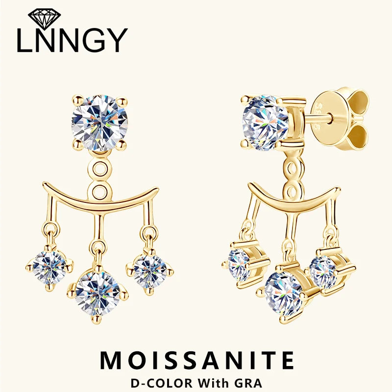 Lnngy Dazzling 5mm 0.5ct Moissanite Earrings For Women 925 Sterling Silver Double Wear Stud Earring Pendientes Plata 925 Jewelry