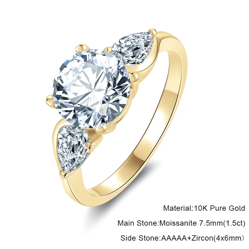 Lnngy Exquisite 7.5mm 1.5CT Moissanite Rings Certified 10K Pure Gold Three Stone Engagement Ring For Women Lab Diamond Jewelry