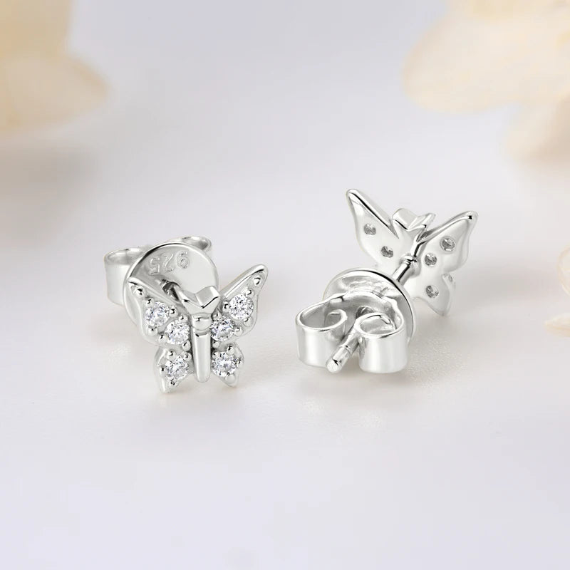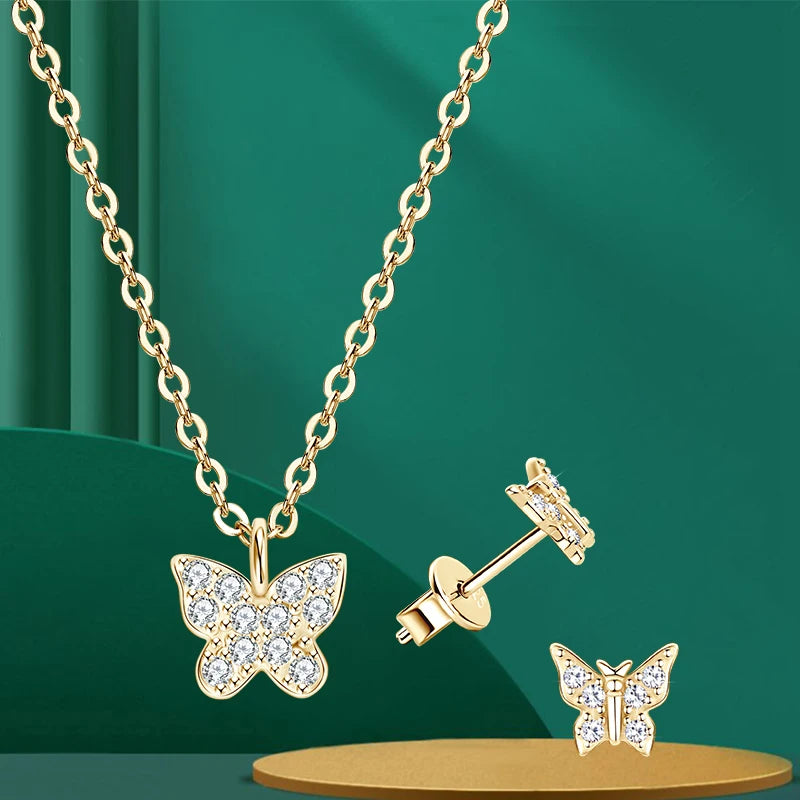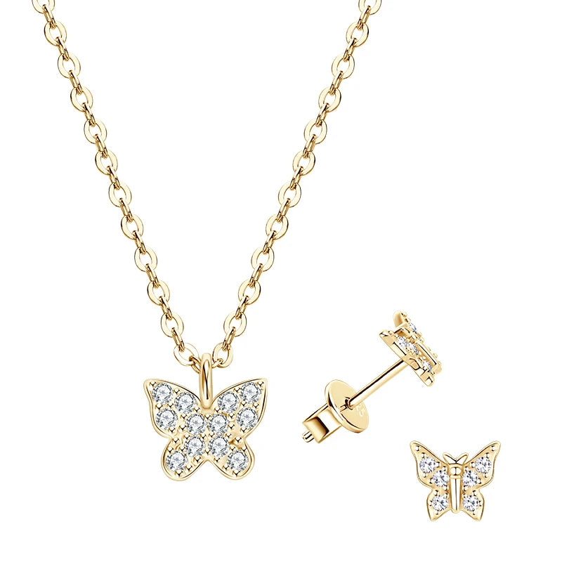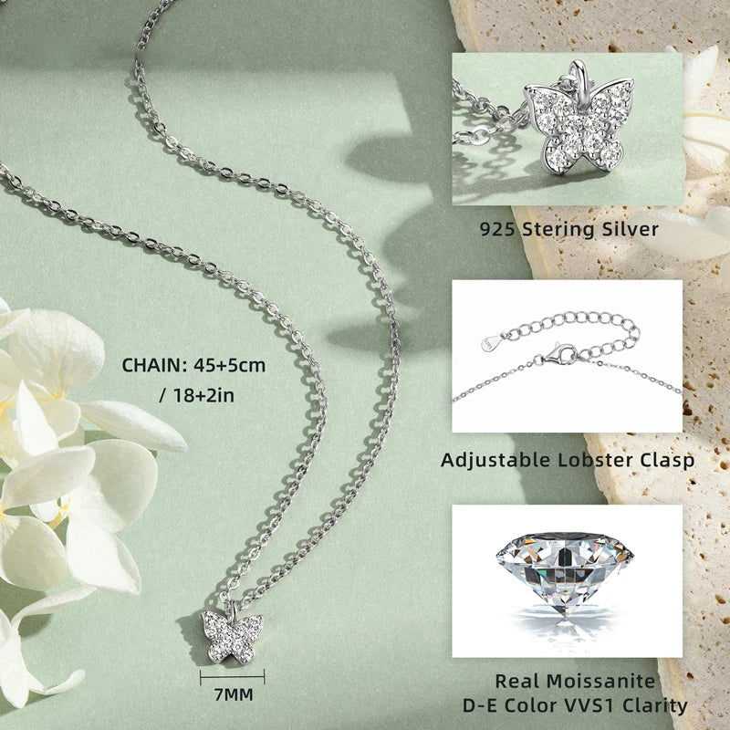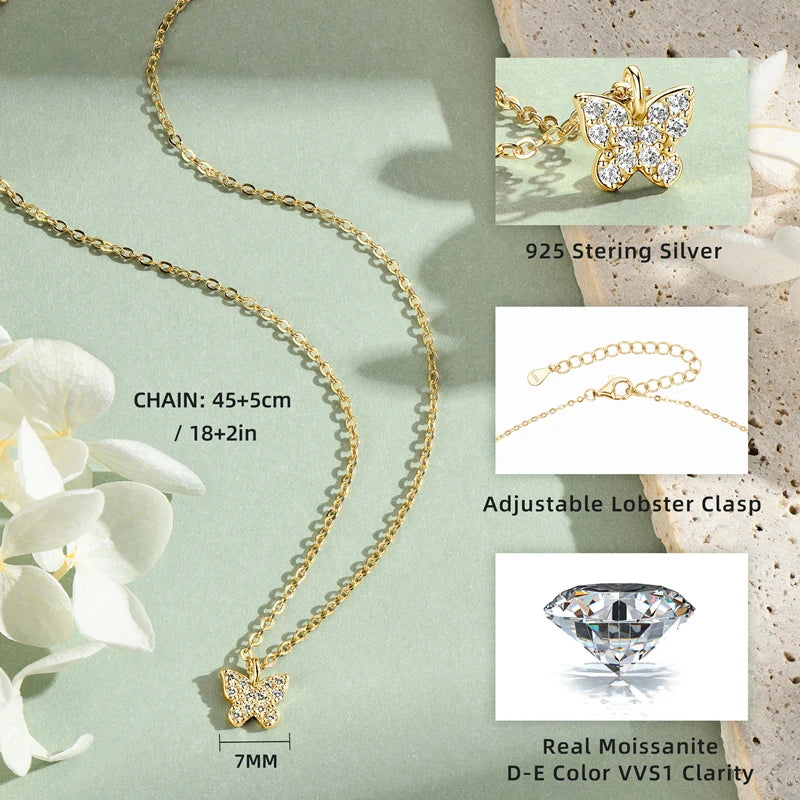 Lnngy Genuine 925 Silver Butterfly Pendant Necklaces Exquisite Moissanite Necklace Stud Earring Jewelry Set For Birthday Gift