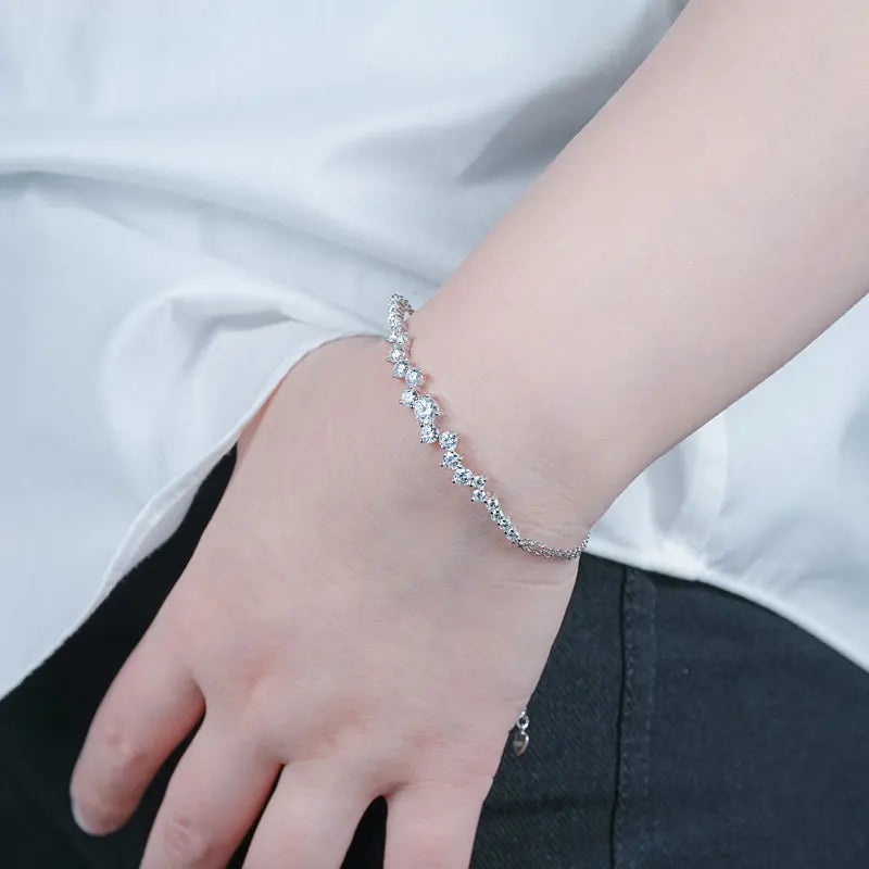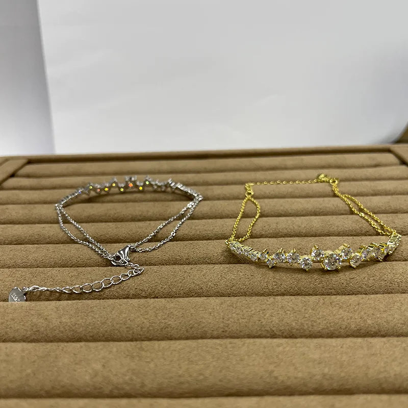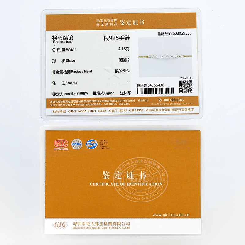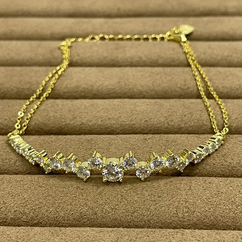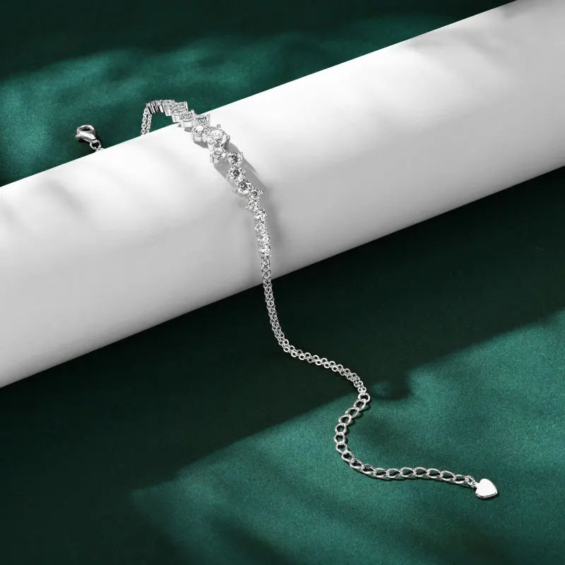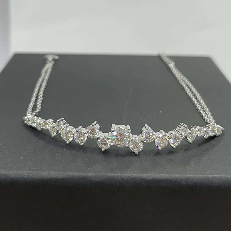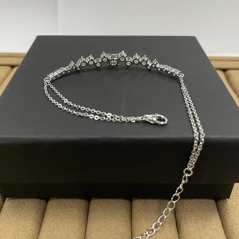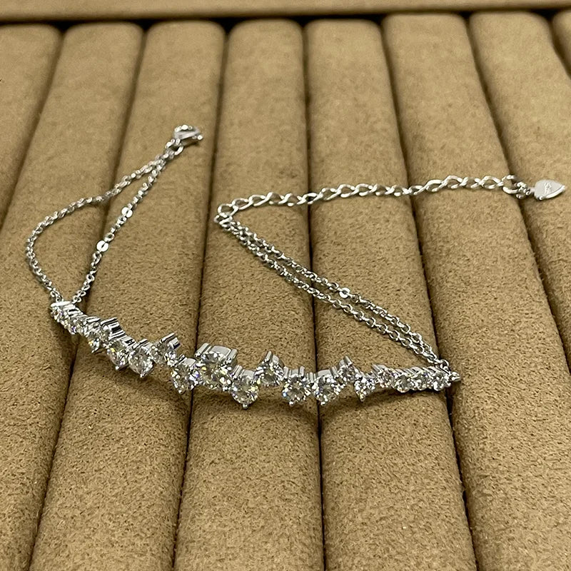 Lnngy Moissanite Bracelet With Certificate 925 Sterling Silver Adjustable Double Chain Bracelets for Women Wedding Jewelry Gift