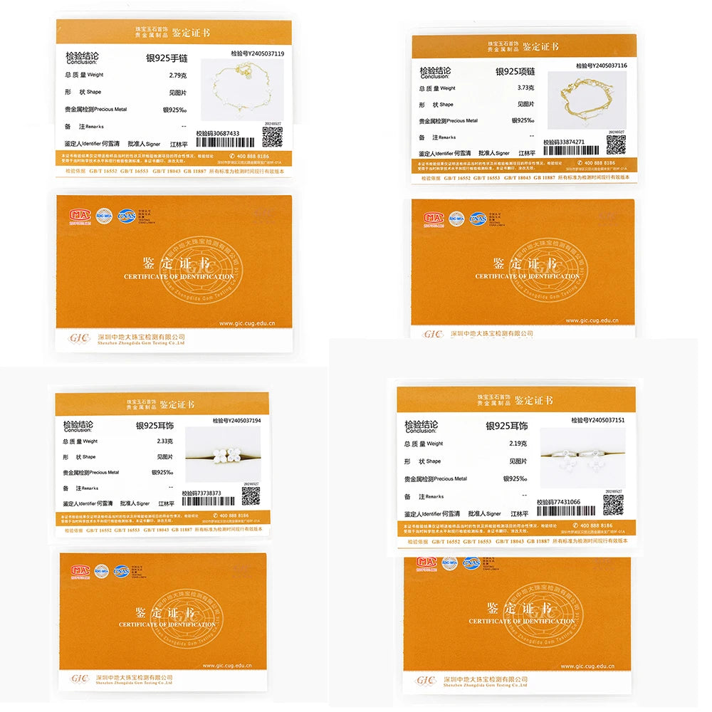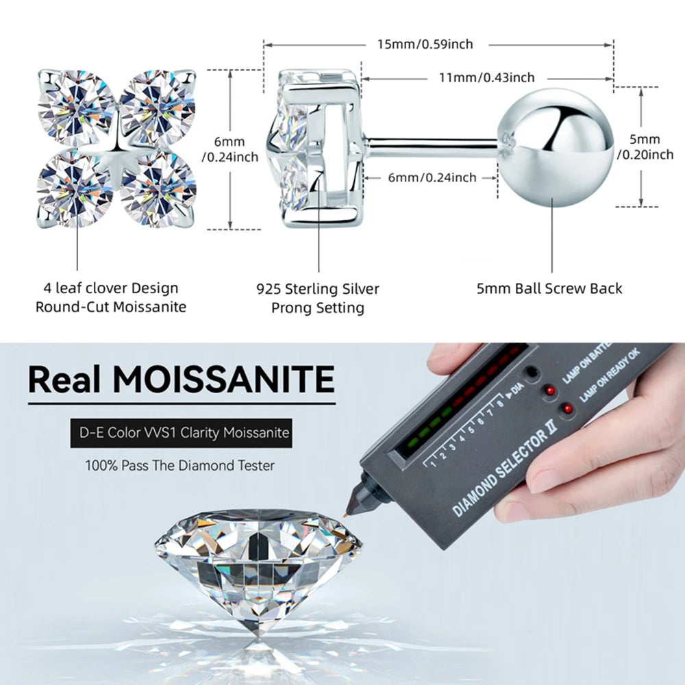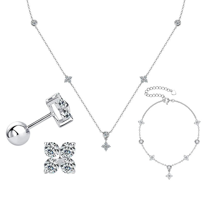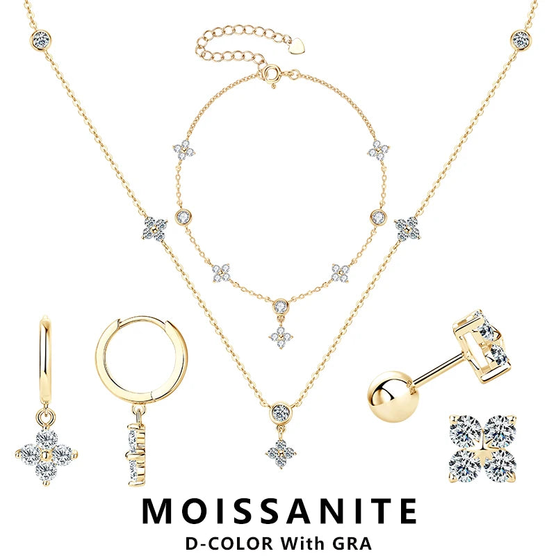 Lnngy Moissanite Necklace Bracelet Earring 925 Sterling Silver Four Leaf Flower Pendant Moissanites Jewelry Set For Wedding Gift