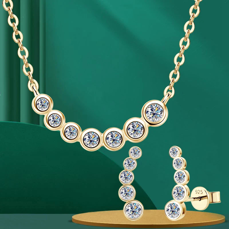 Lnngy One Row Bezel Moissanite Choker Necklace Climber Earring For Women 925 Sterling Silver Stud Earrings Necklaces Jewelry Set