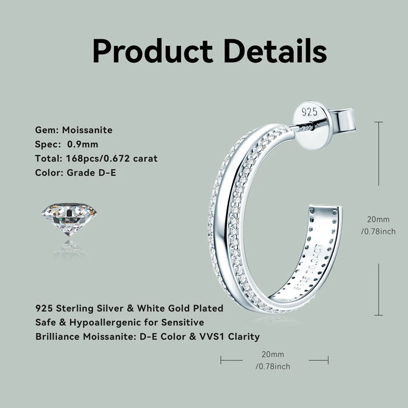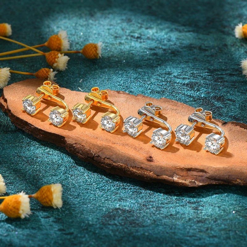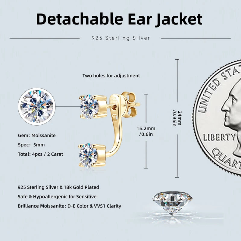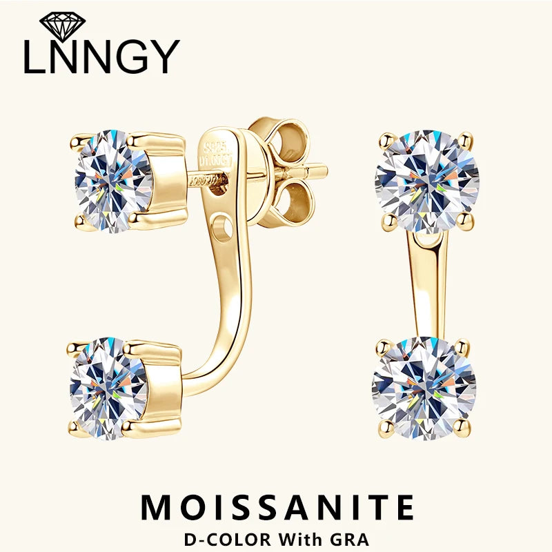 Lnngy Original 925 Sterling Silver Earrings Front Back Double Sided 5MM Moissanite Stud Earring For Women 2 in 1 Pierced Jewelry